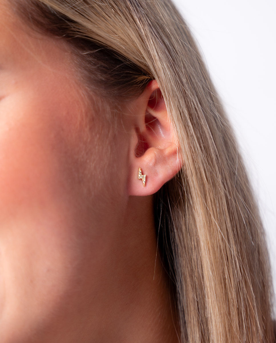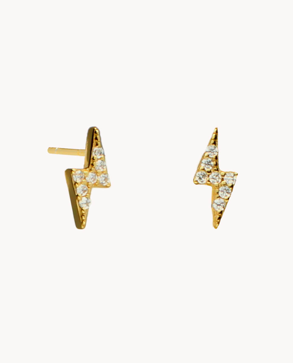 Pendientes rayo mini de circonitas de plata de ley 925 bañada en oro