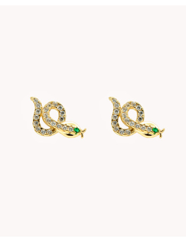 Pendientes serpiente ojos verdes de plata de ley 925 bañada en oro