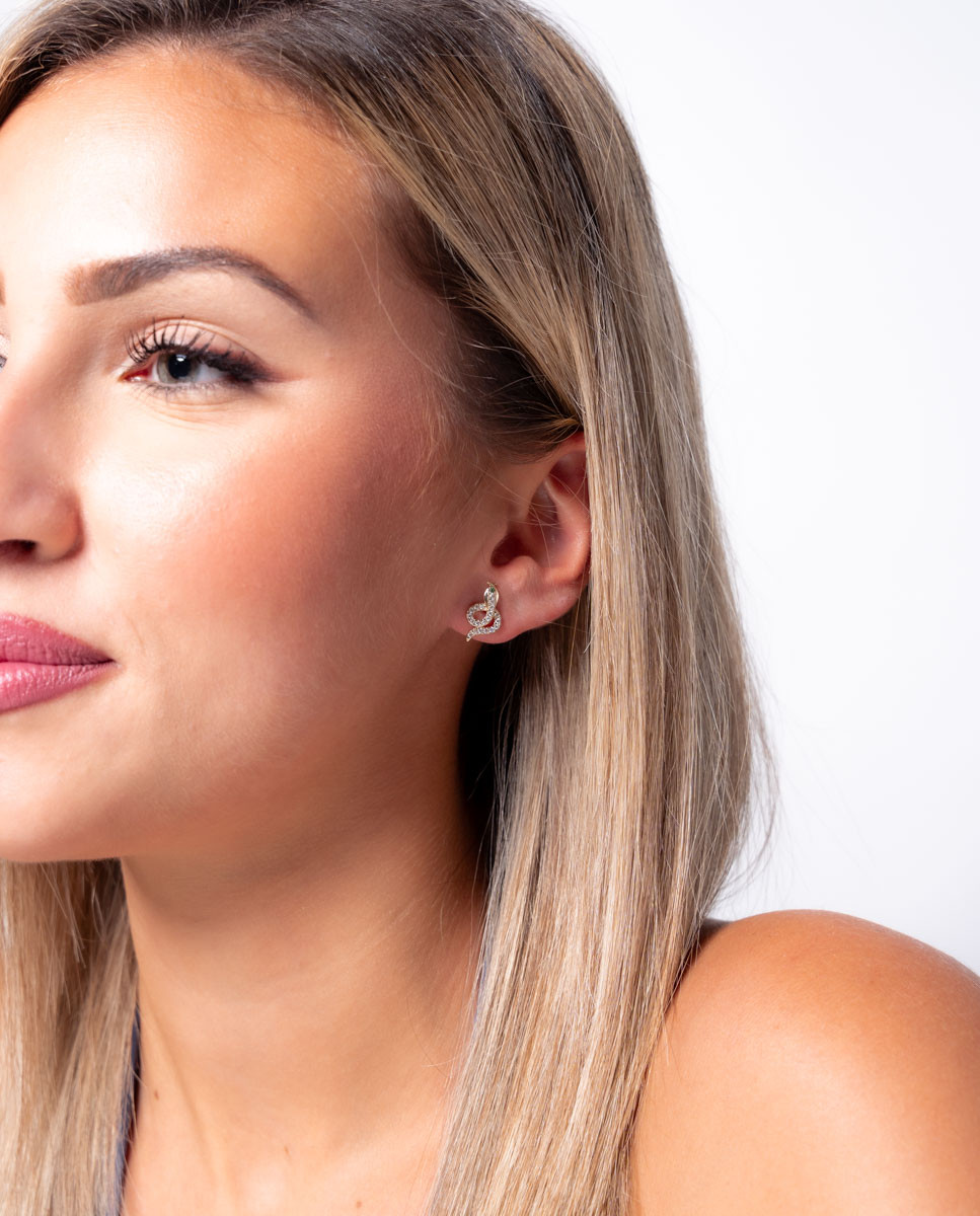 Pendientes de plata de ley 925 bañada en oro con forma de serpiente de 8 mm x 15 mm (ancho por alto) con circonitas blancas y circonitas verdes en los ojos, cierre de presión.