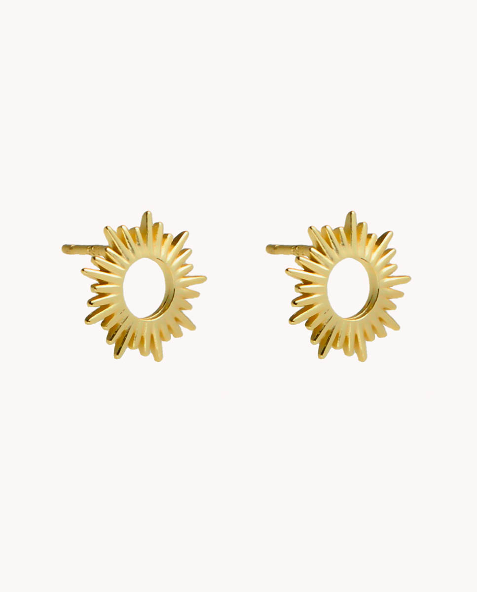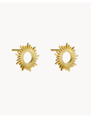 Pendientes de plata de ley 925 bañada en oro con sol de 10 mm de diámetro y cierre de presión.