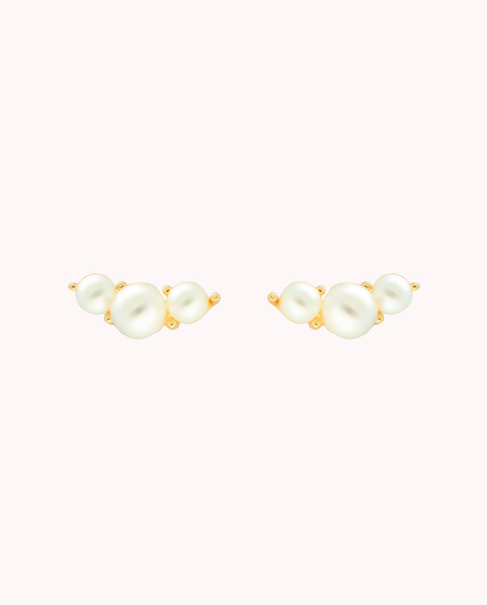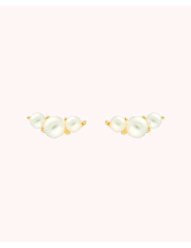 Pendientes tres perlas de plata de ley 925 bañada en oro