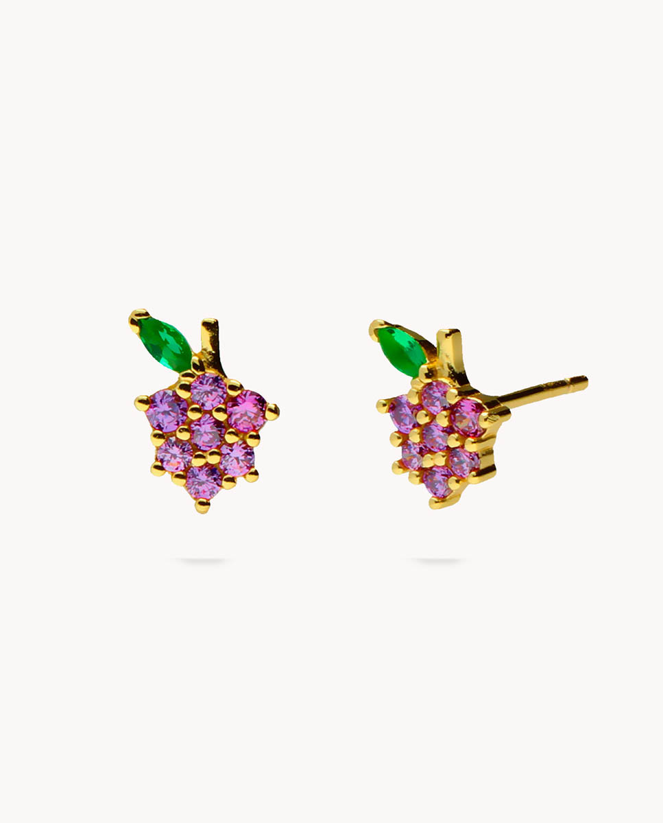 Pendientes uvas mini de plata de ley 925 bañada en oro