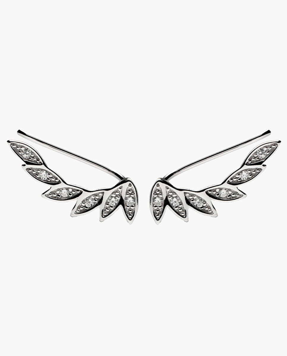 Pendientes trepadores alas de plata de ley 925 bañada en rodio