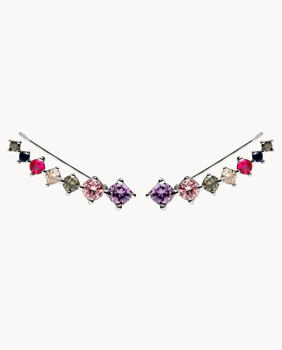 Pendientes trepadores malvas circonitas de plata de ley 925 bañada en rodio