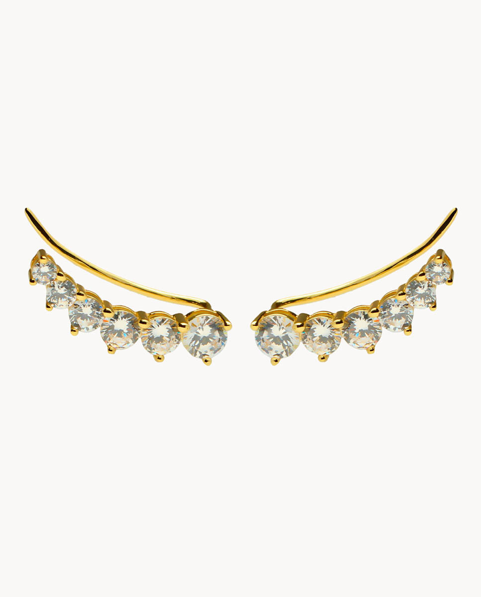Pendientes trepadores nia de plata de ley 925 bañada en oro con circonitas