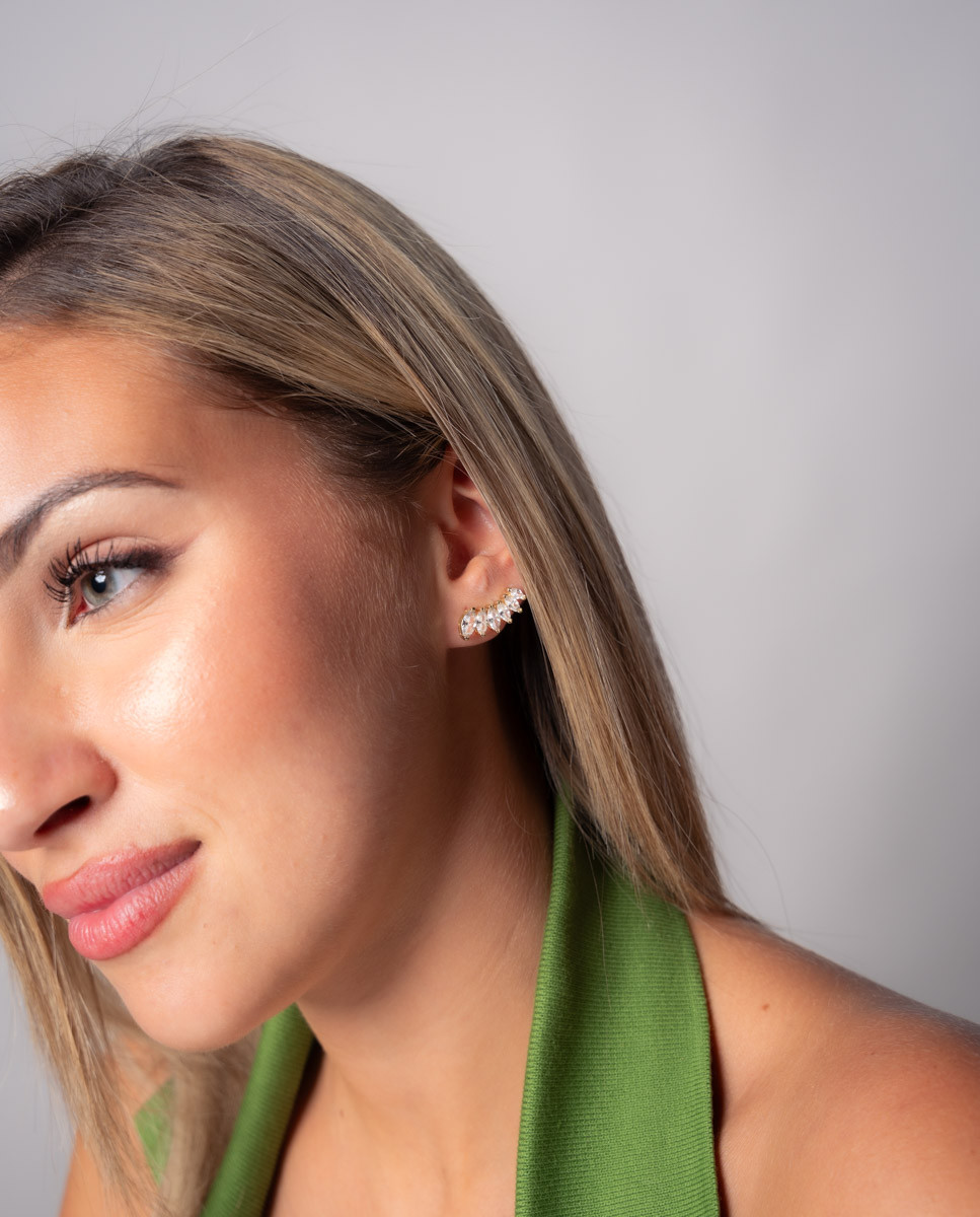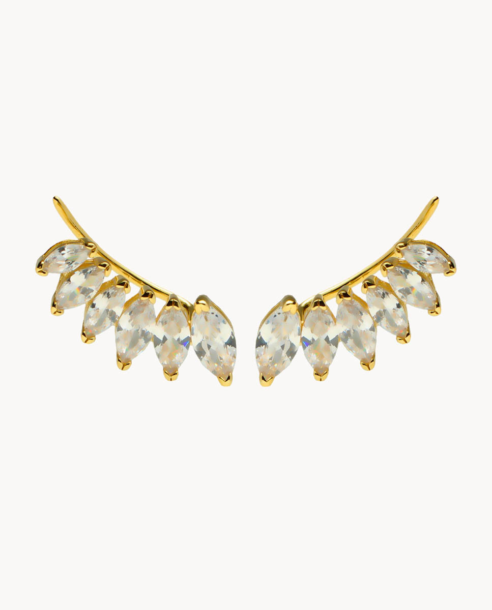 Pendientes trepadores nori de plata de ley 925 bañados en oro con circonitas