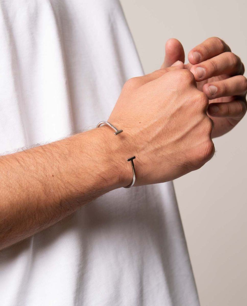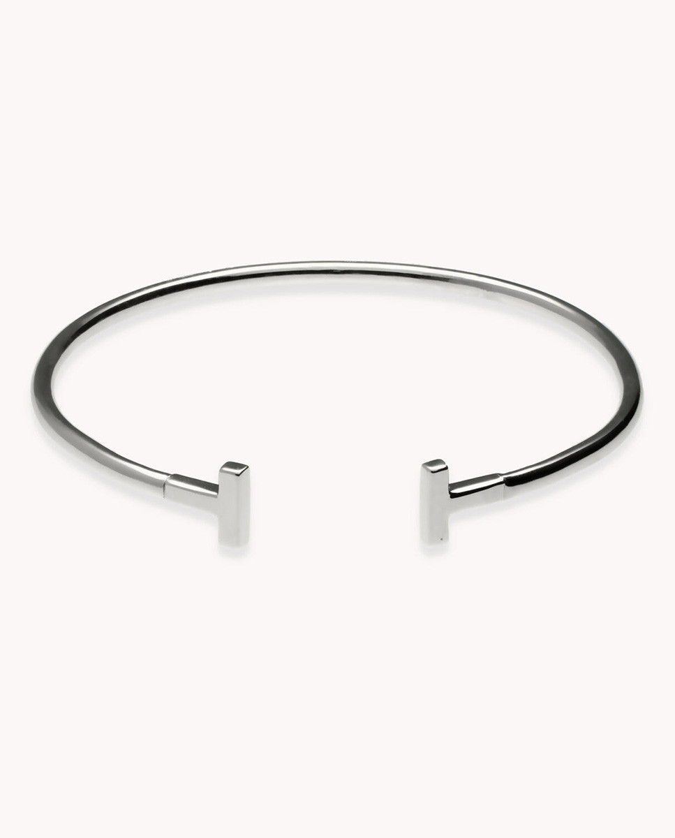 Pulsera unisex de plata de ley 925 bañada en rodio con forma de media caña de 60 mm de diámetro y 2 mm de grosor.