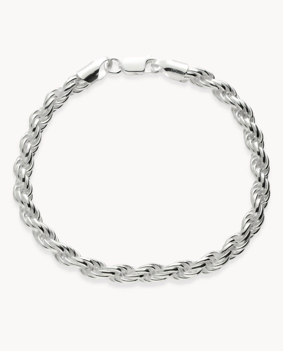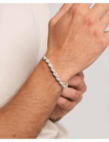 Pulsera de plata de ley 925 con eslabón tipo cordón macizo de 6 mm de ancho y 21 cms de largo, cierre de mosquetón.