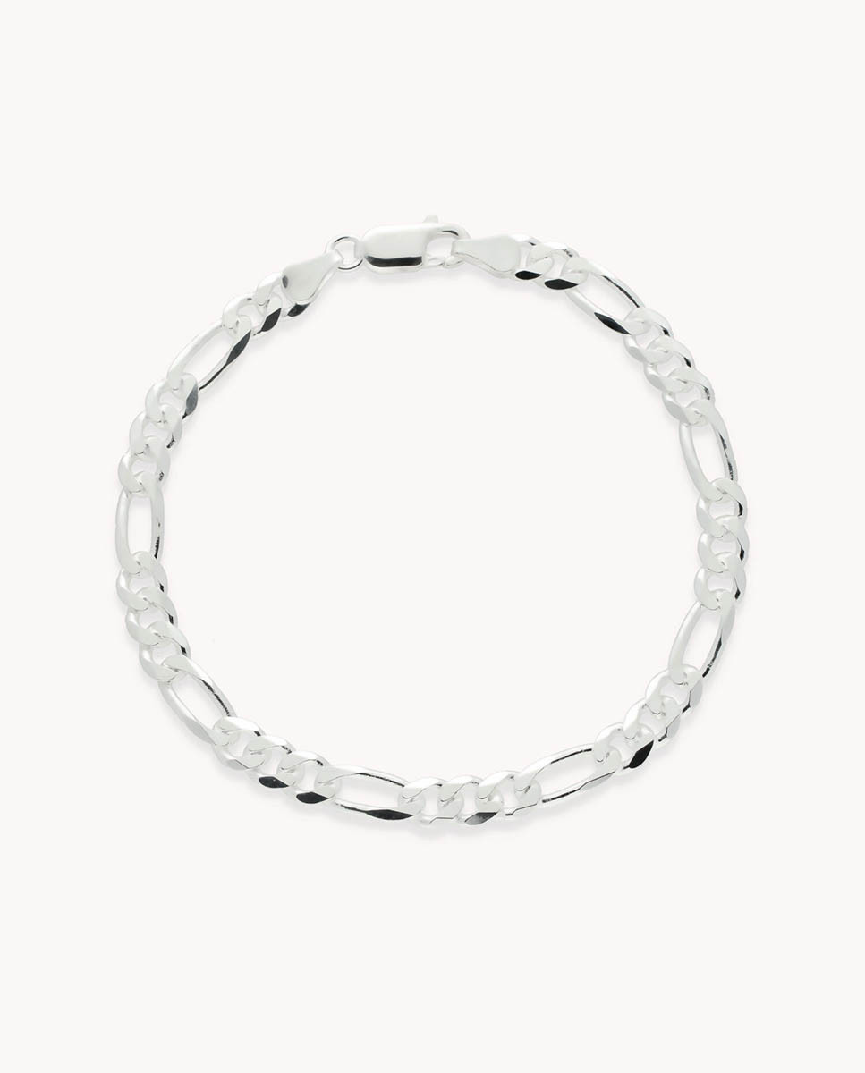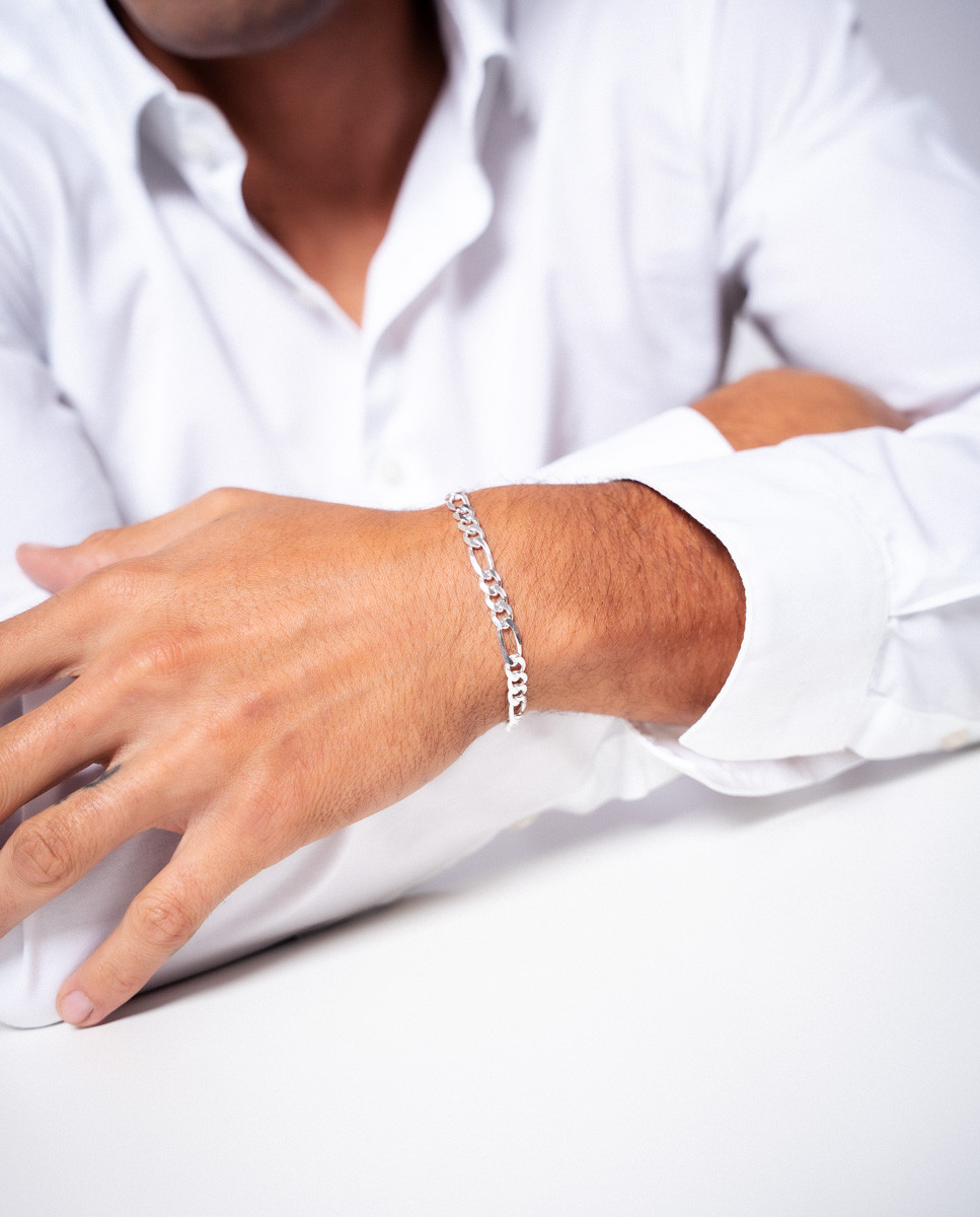 Pulsera de plata de ley 925 con eslabón tipo cartier de 5 mm de ancho y 21 cms de largo, cierre de mosquetón.