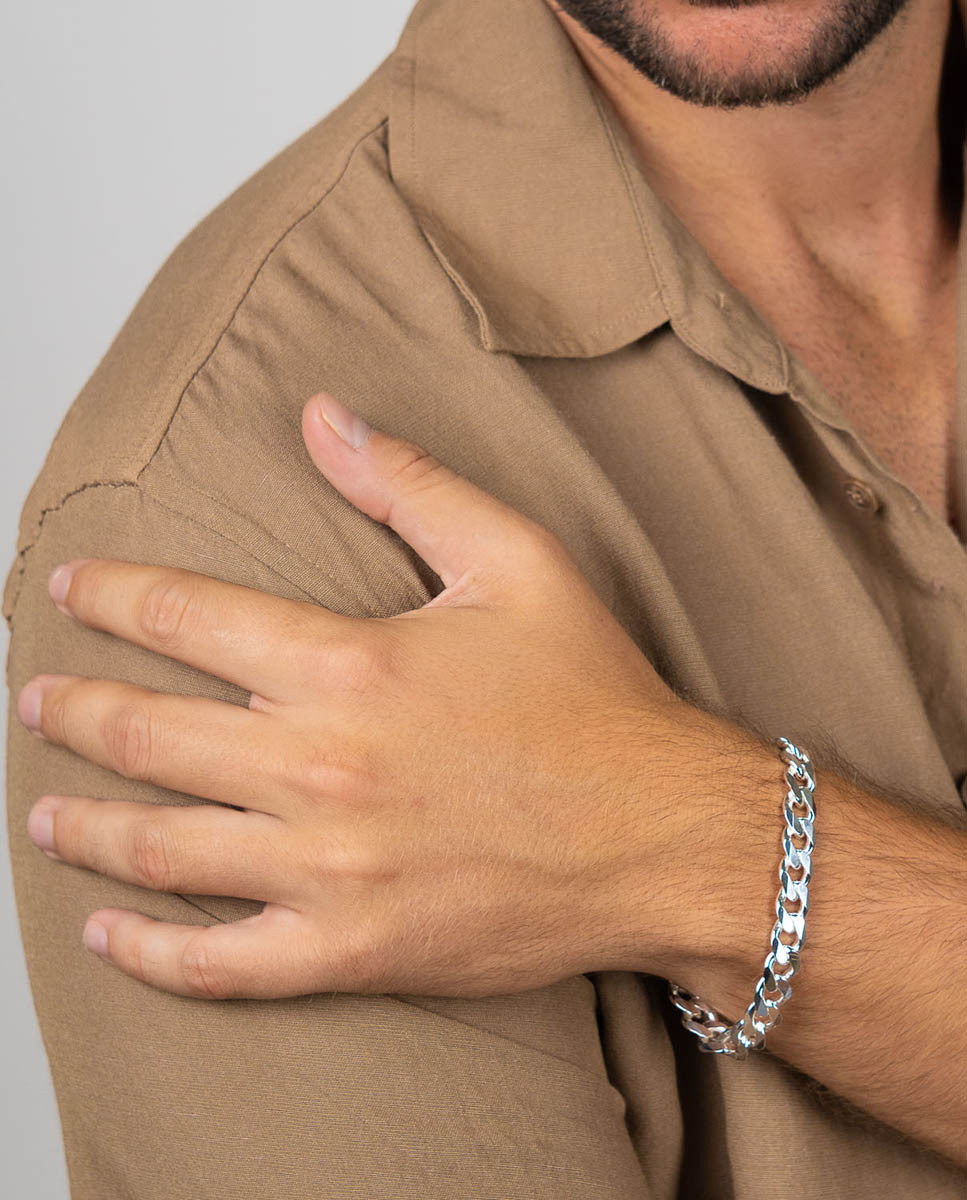 Pulsera de plata de ley con eslabón barbado de 9,20 mm de ancho , cierre mosquetón y 22 cms de largo