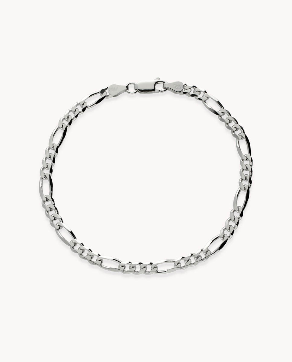 Pulsera de plata de ley 925 bañada en rodio con eslabón tipo cartier de 5,2 mm de ancho, cierre de mosquetón y 20 cms de largo.