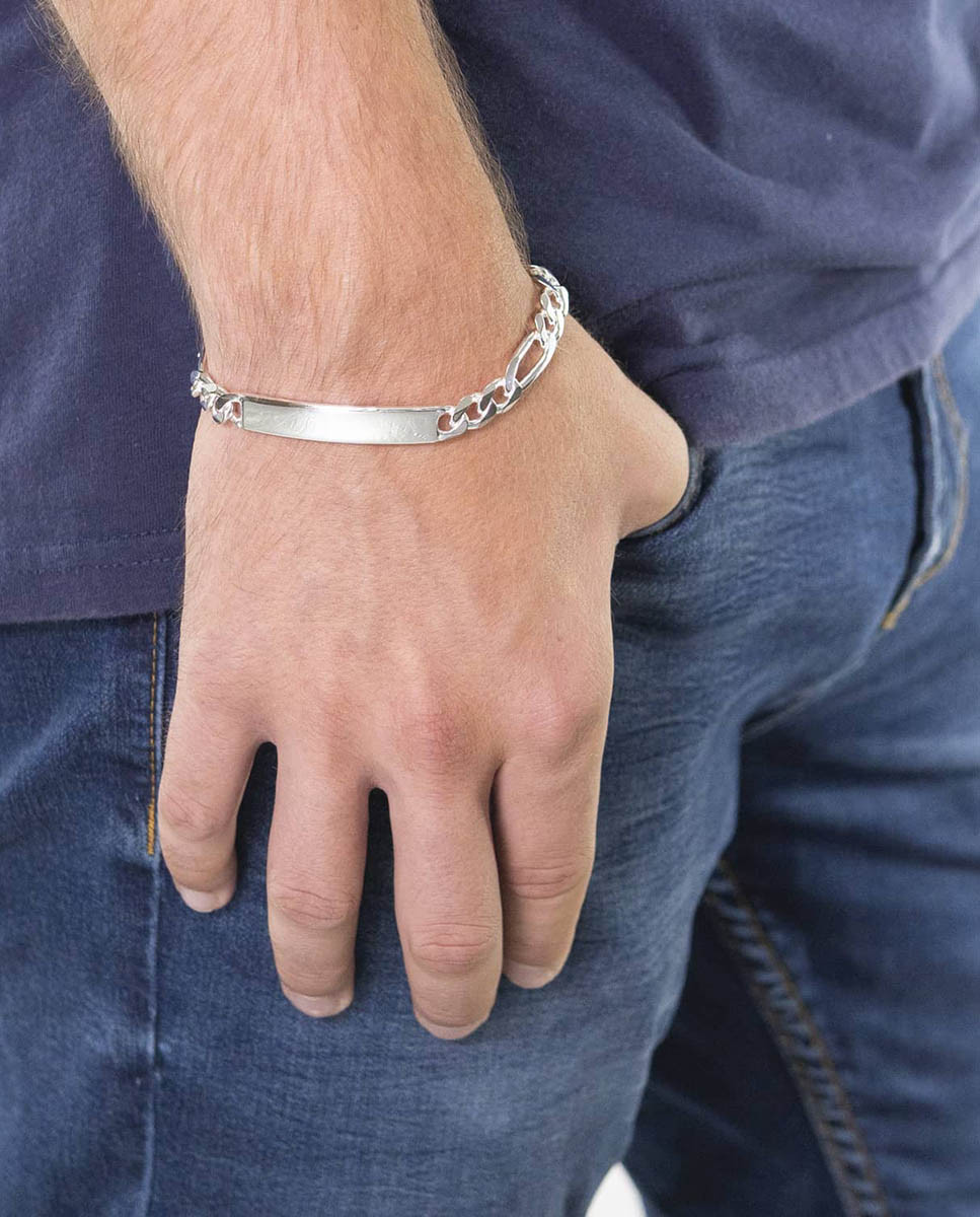 Pulsera de plata de ley 925 estilo esclava con eslabón cartier de 7 mm de ancho y placa central de 7 mm de ancho y 40 mm de largo, cierre de mosquetón y 22 cms de largo.