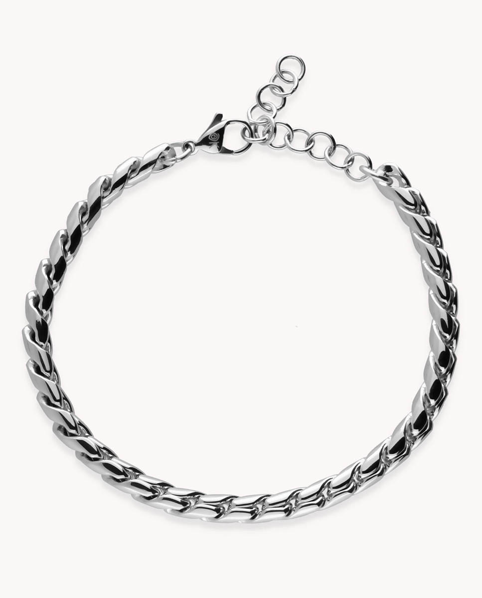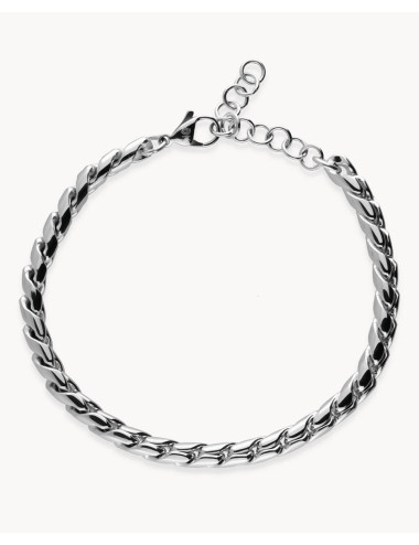 Pulsera de acero inoxidable matizado, largo 18 cms más 4 cms de alargador y cierre de mosquetón.