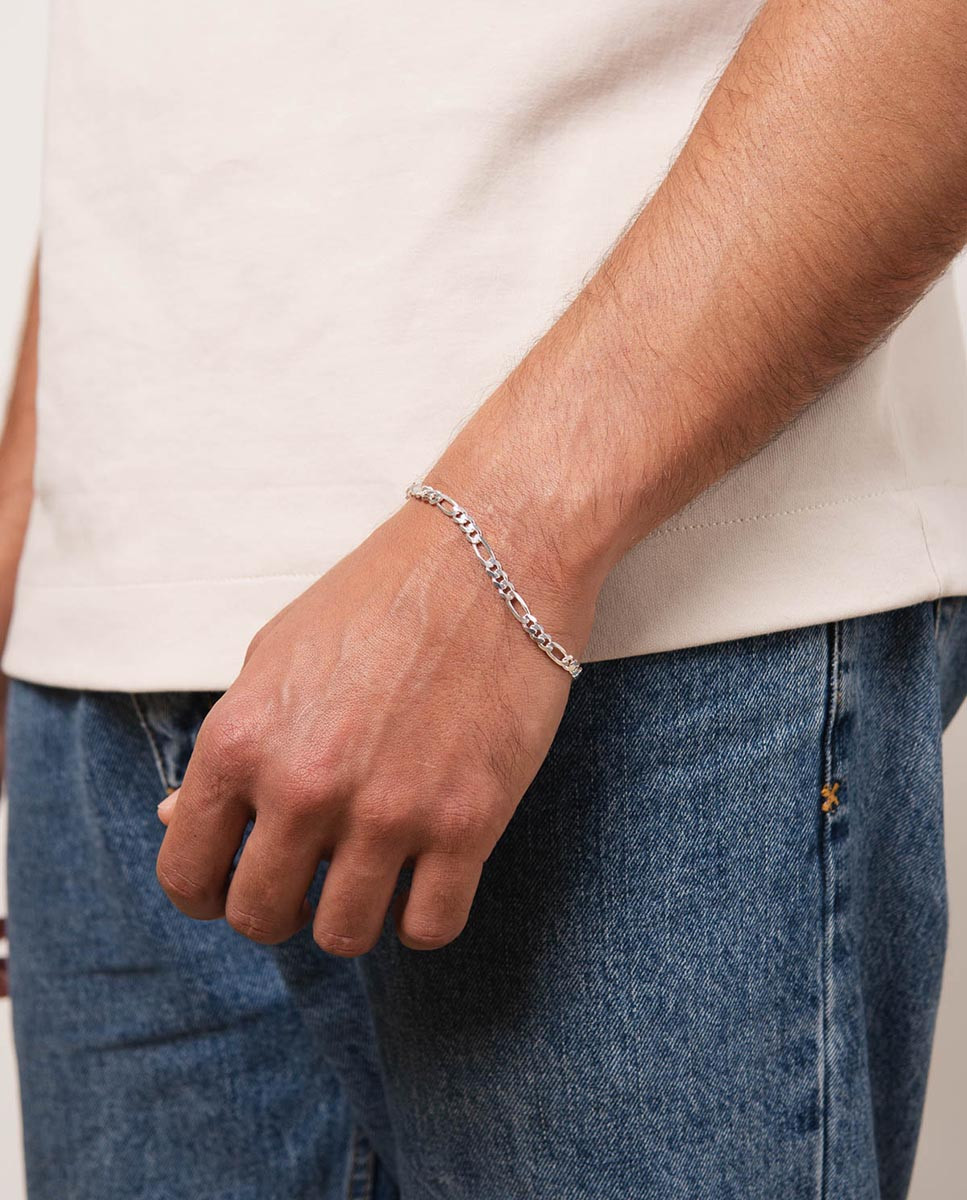 PULSERA DE HOMBRE OK SILVER FÍGARO 5 MM DE PLATA DE LEY 925