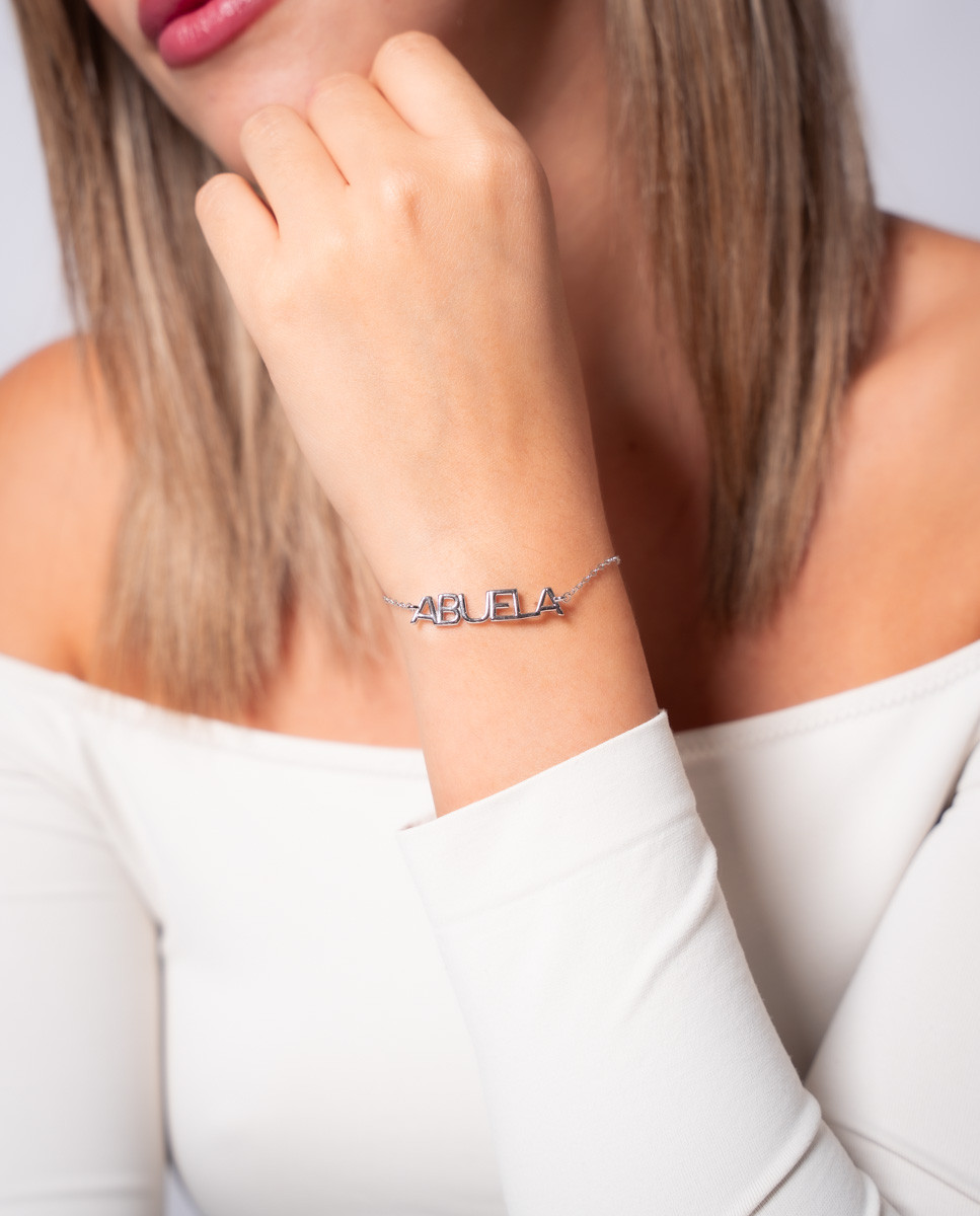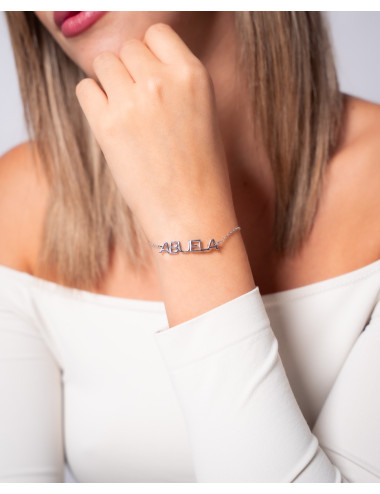 Pulsera abuela letras de plata de ley 925 bañada en rodio