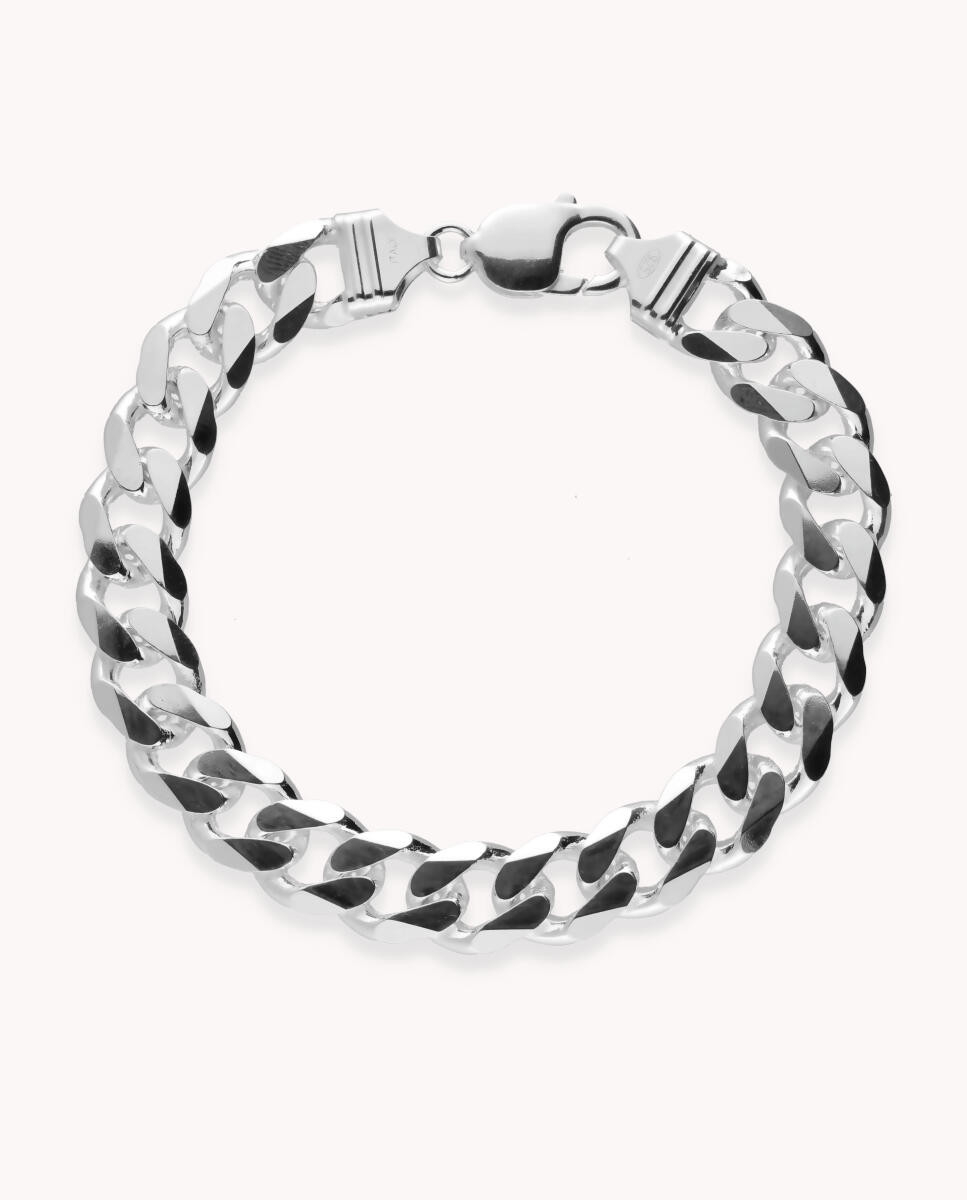 Pulsera de plata de ley 925 con eslabón tipo barbado de 10,7 mm de ancho, cierre de mosquetón y 22 cms de largo.