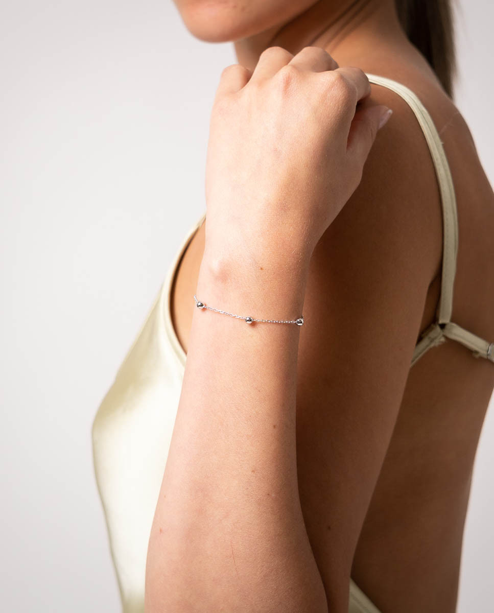Pulsera bolas promesa de plata de ley 925 bañada en rodio