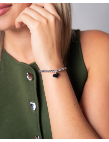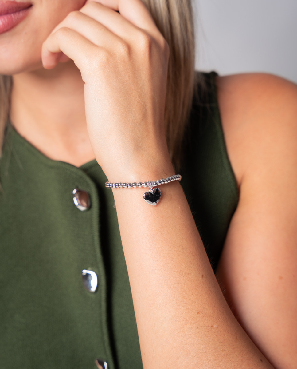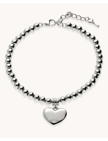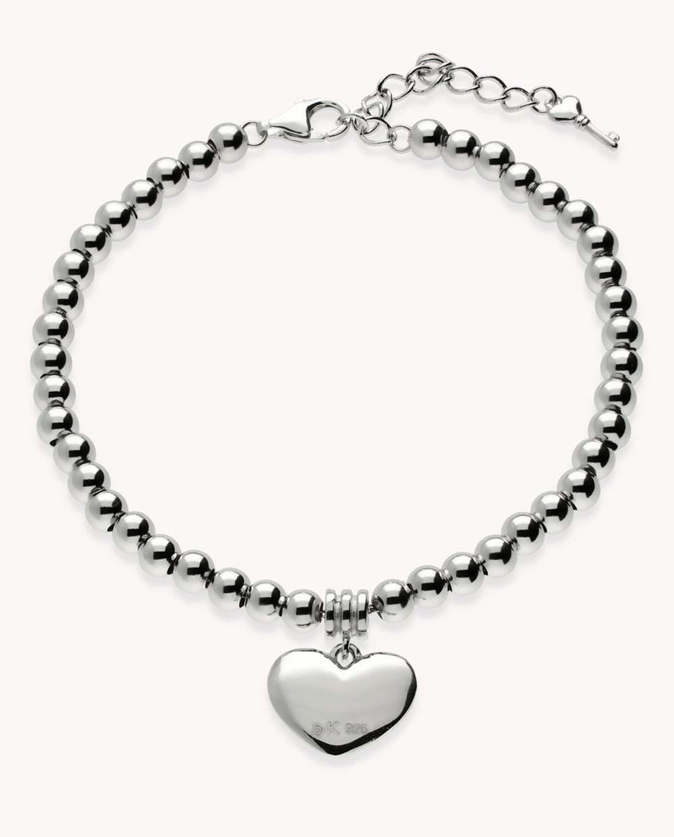 Pulsera corazón en bolitas de plata de ley 925 bañada en rodio