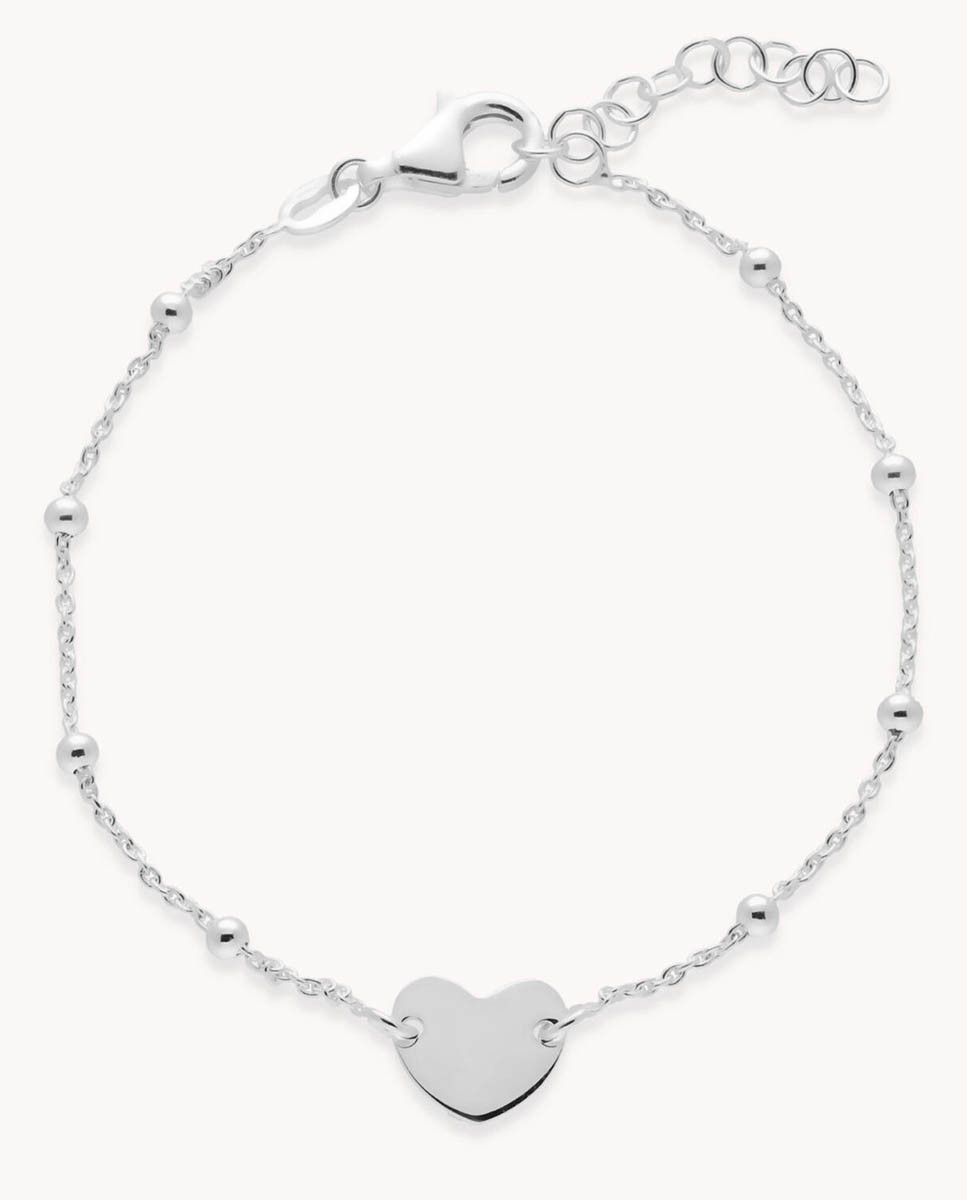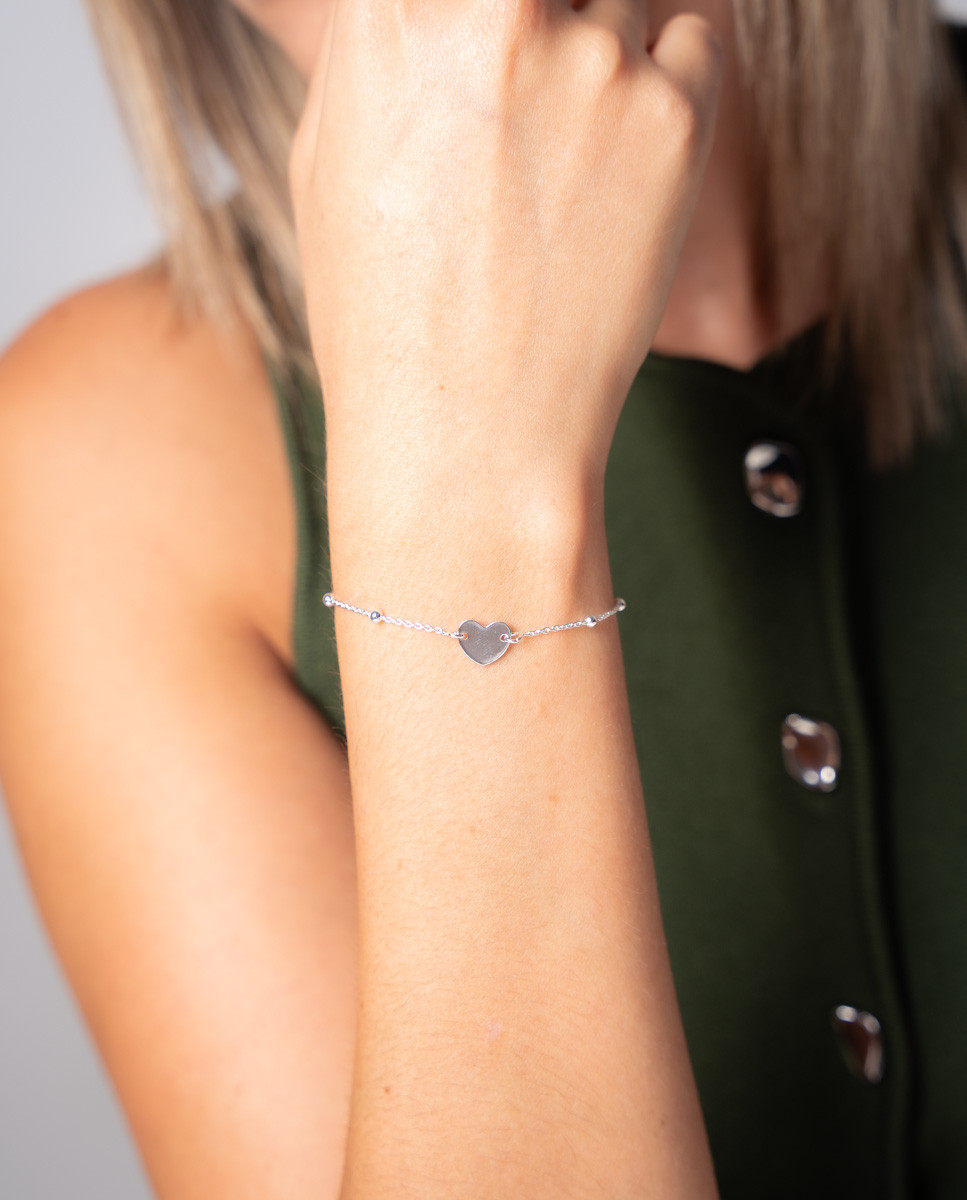 Pulsera corazón liso bolitas chic de plata de ley 925