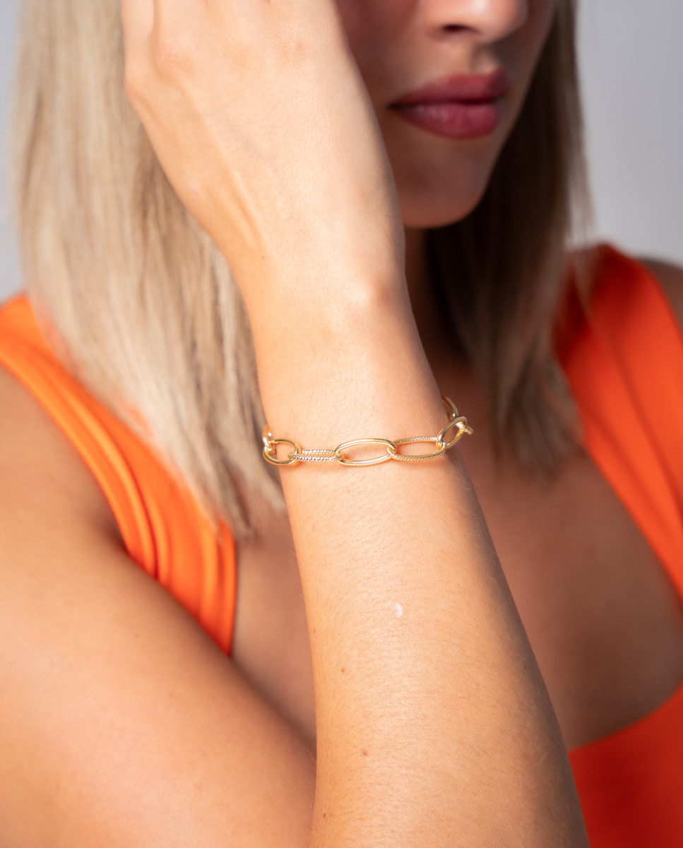 PULSERA OK SILVER ESLABONES FIESTA DE PLATA DE LEY 925 BAÑADA EN ORO