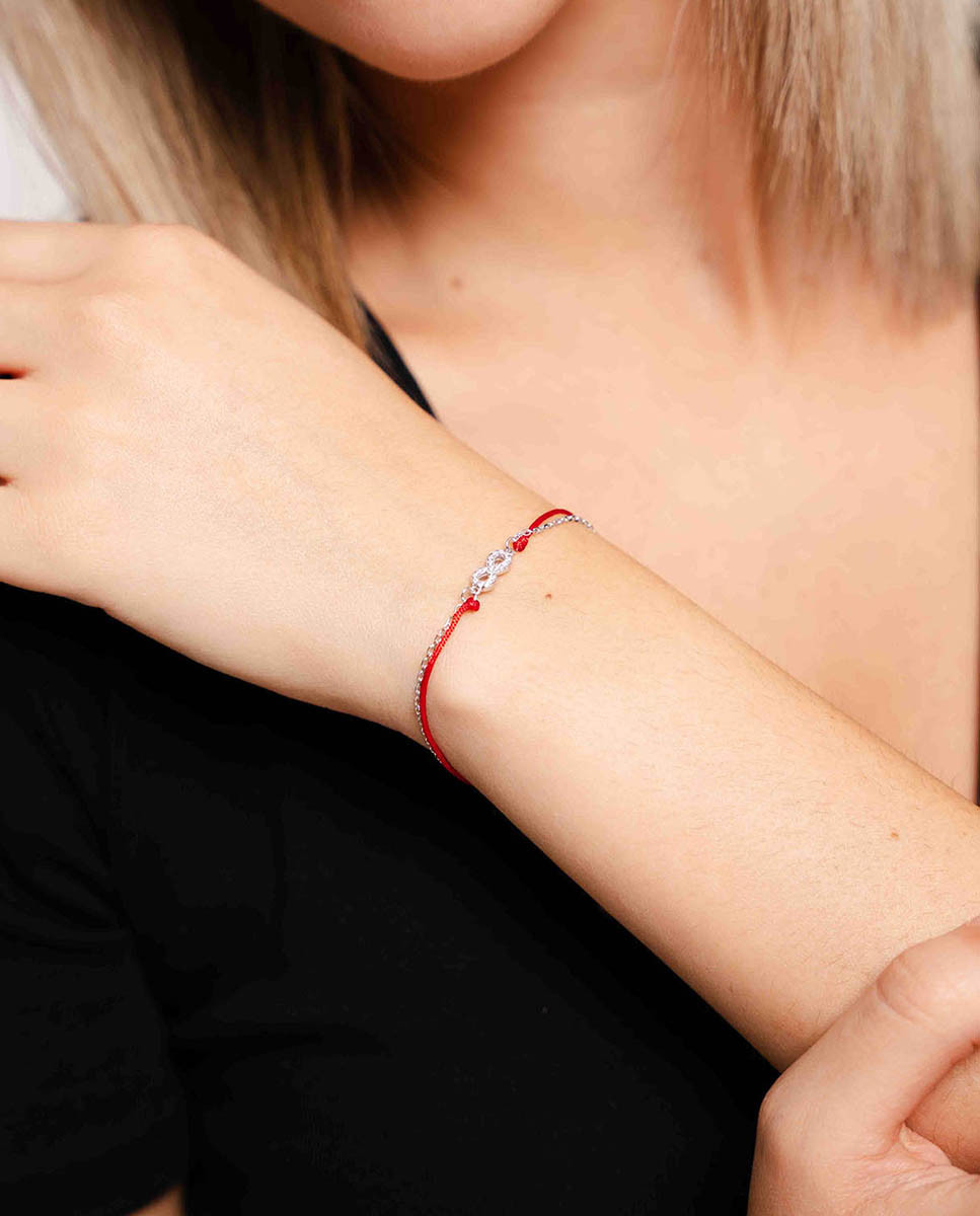 Pulsera hilo rojo infinito de plata de ley 925 bañada en rodio