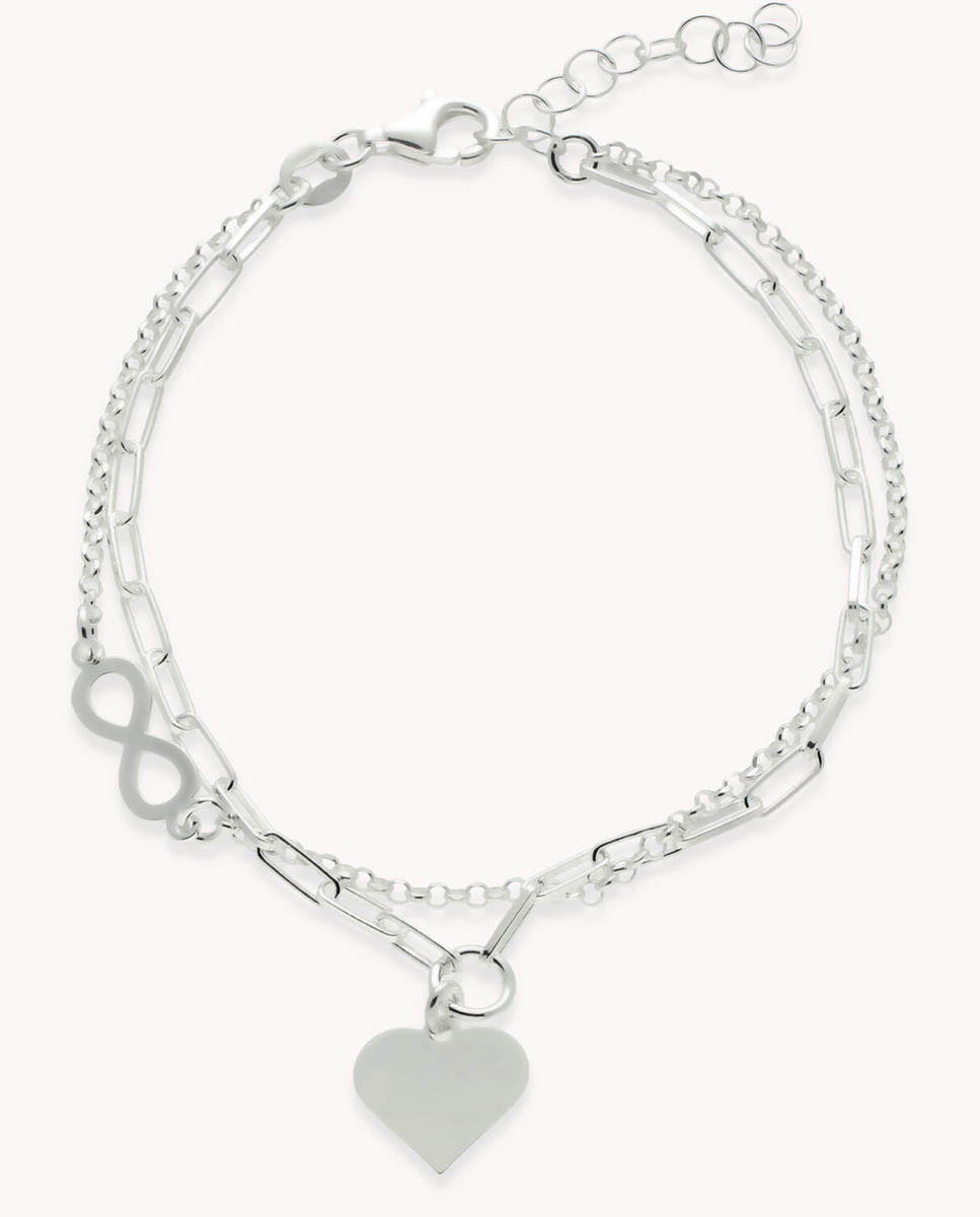 Pulsera infinito y corazón en cadenas de plata de ley 925