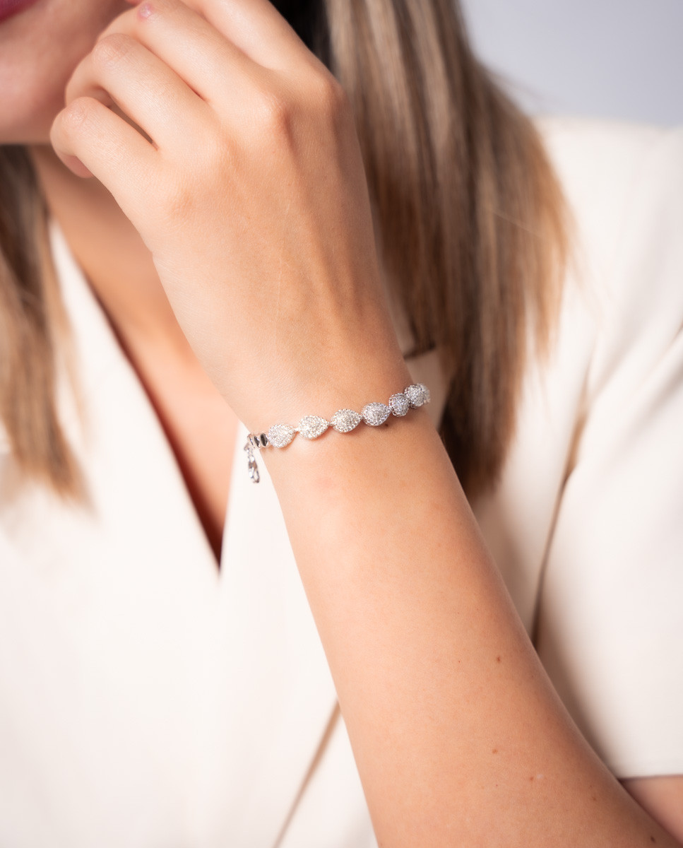 Pulsera lágrimas brillantes de plata de ley 925 bañada en rodio