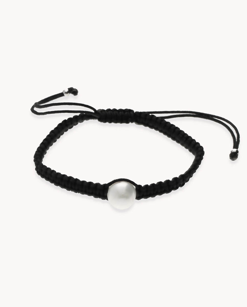 Pulsera macramé negro perla cultivada de plata de ley 925 bañda en rodio
