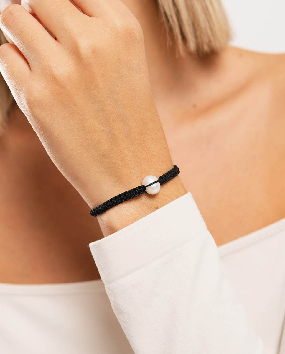 PULSERA OK SILVER MACRAMÉ NEGRO PERLA CULTIVADA DE PLATA DE LEY 925 BAÑDA EN RODIO
