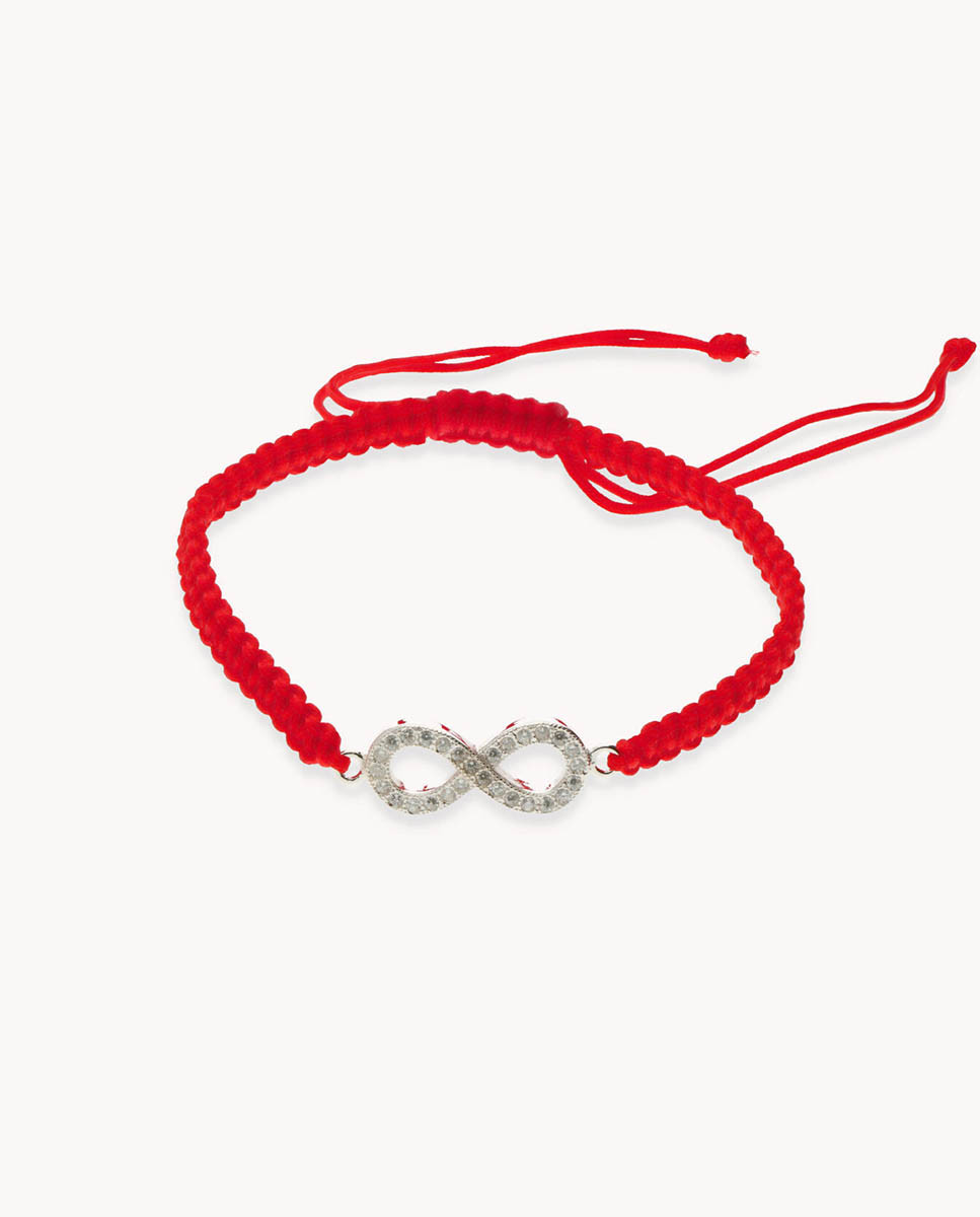 Pulsera macramé rojo infinito brillo de plata de ley 925 bañada en rodio