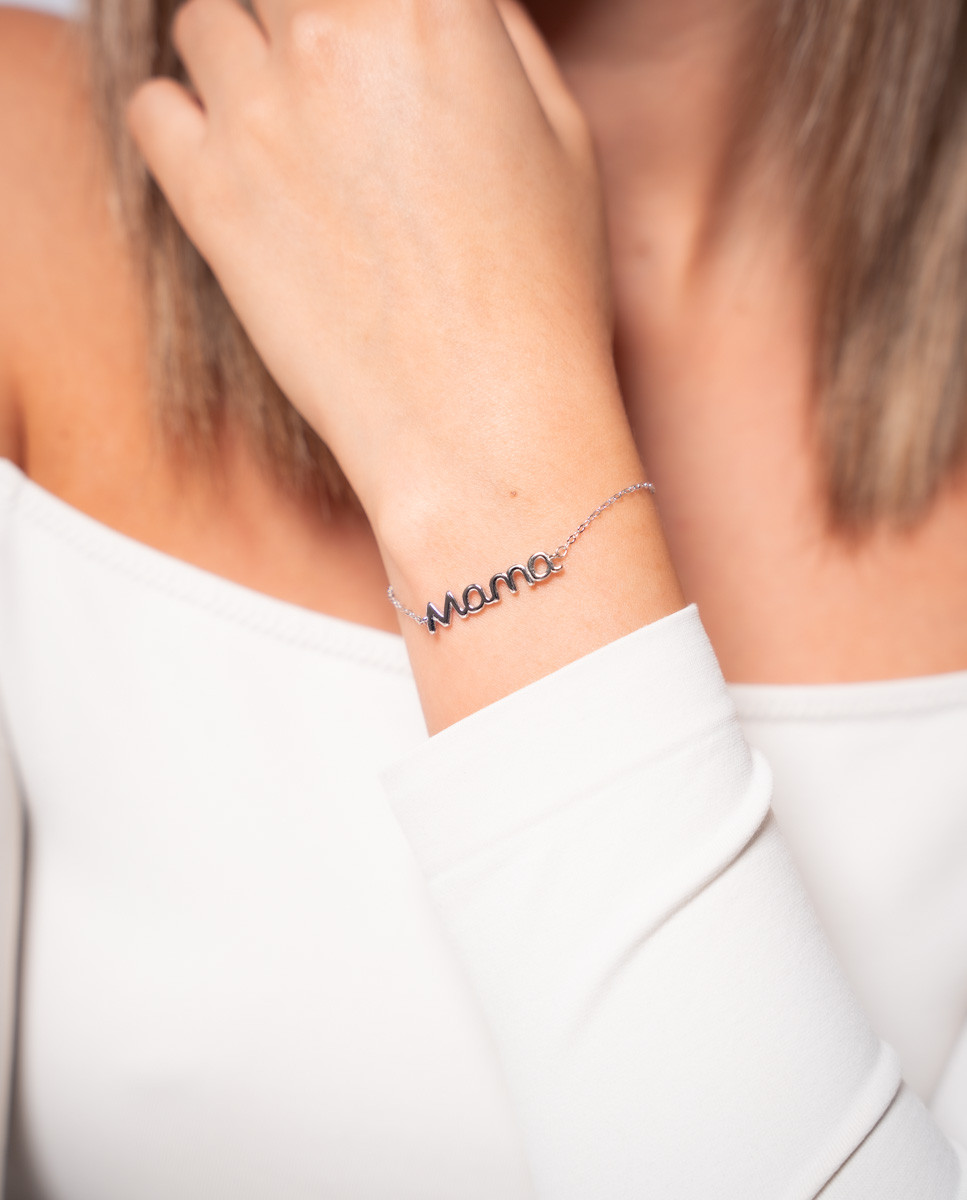 Pulsera mamá letras de plata de ley 925 bañada en rodio