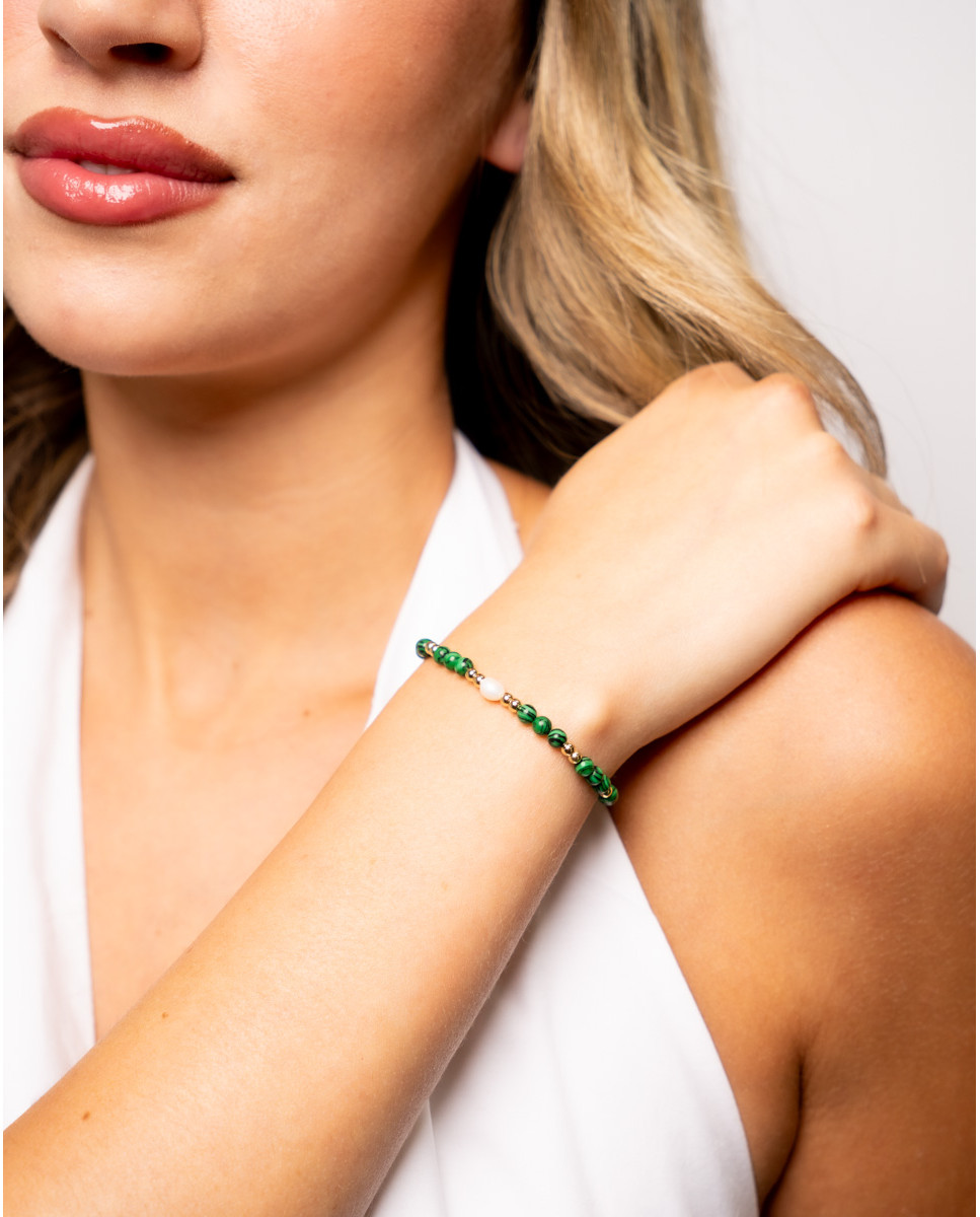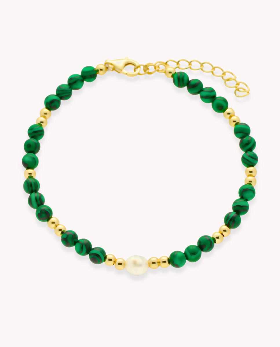 Pulsera perlada malaquita de plata de ley 925 bañada en oro