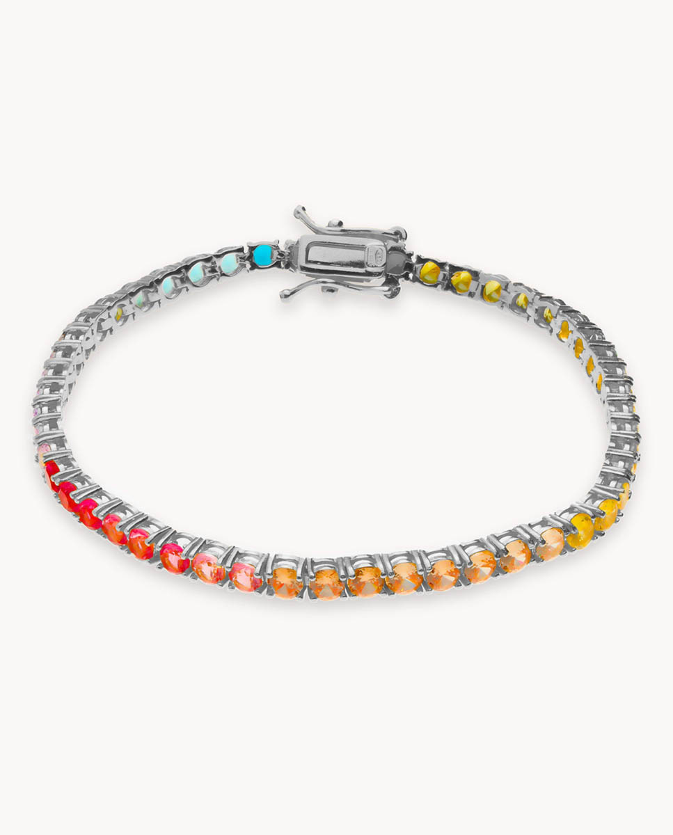 Pulsera riviere arcoiris escalera de plata de ley 925 bañada en rodio