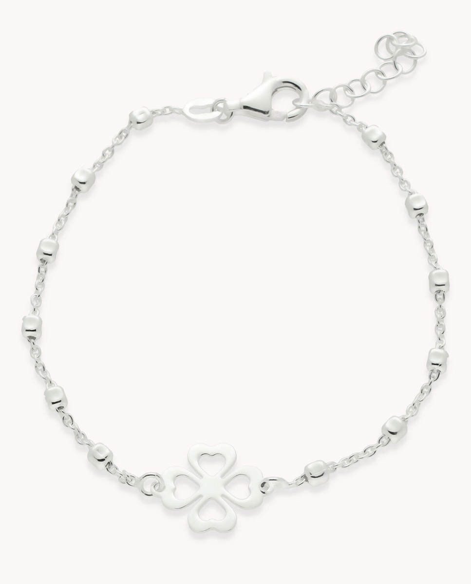 Pulsera trébol liso bolitas chic de plata de ley 925