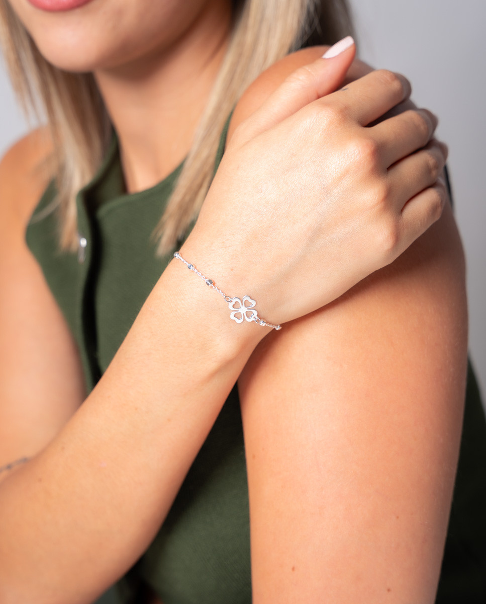 PULSERA OK SILVER TRÉBOL LISO BOLITAS CHIC DE PLATA DE LEY 925