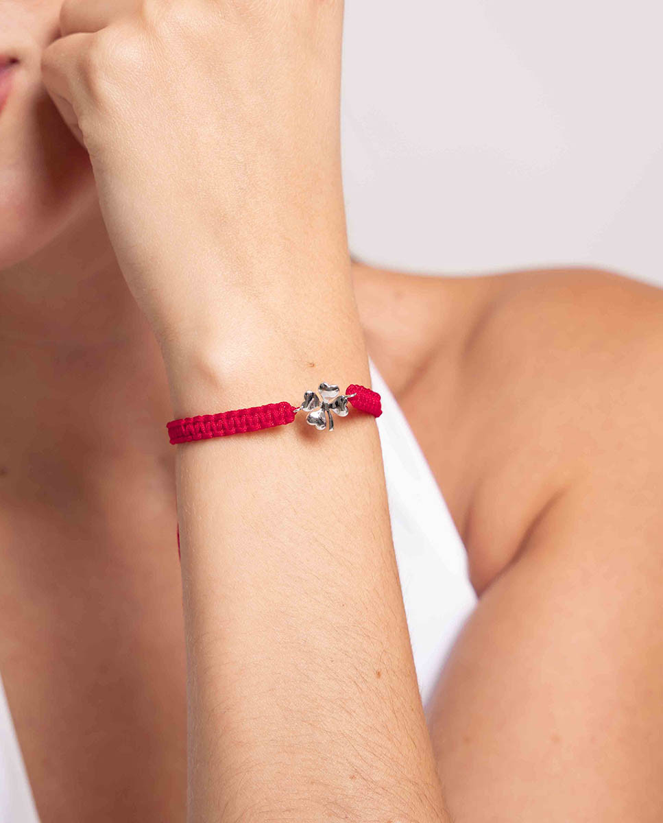 Pulsera trébol macramé rojo de plata de ley 925 bañada en rodio