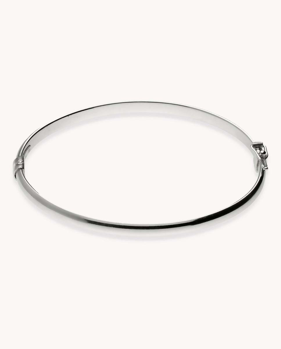Pulsera de plata de ley 925 bañada en rodio, rígida y lisa, 60 mm de diámetro y 4 mm de ancho con cierre de seguridad.
