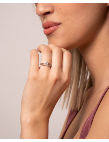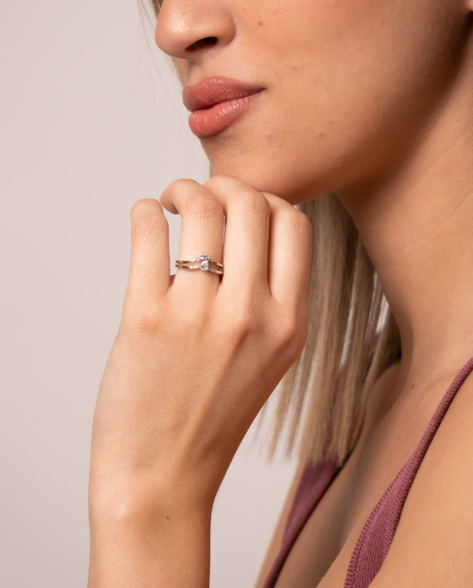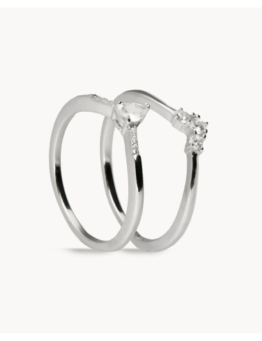 Anillo de plata de ley 925 bañado en rodio compuesto por dos anillos independientes con diferentes motivos, adornados con circonitas blancas.