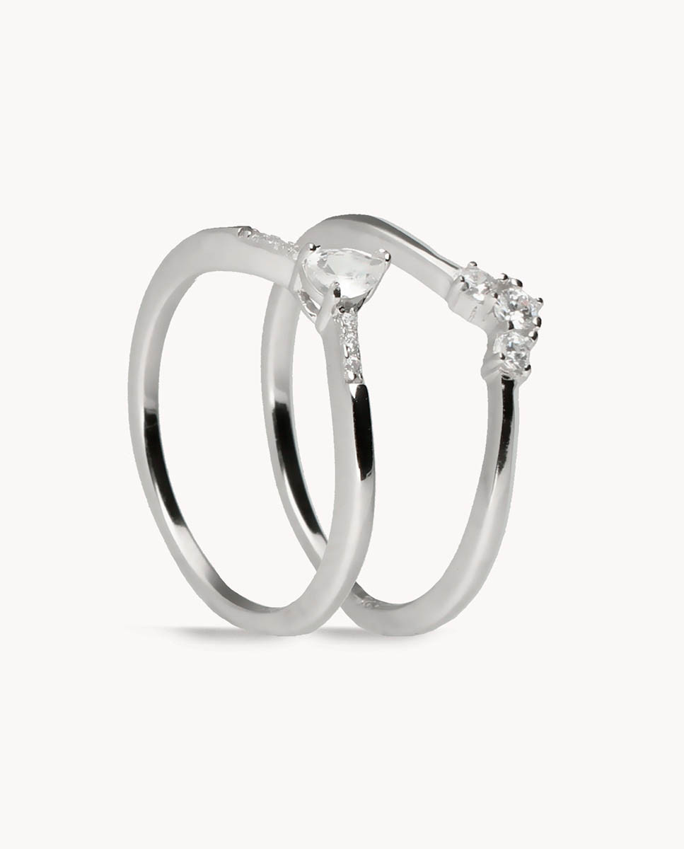 Set de anillos de plata de ley 925 bañada en rodio con circonitas