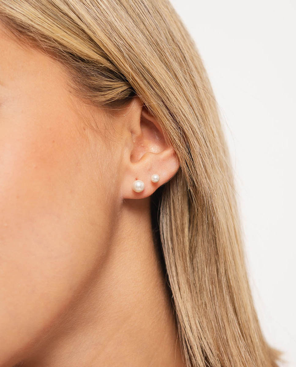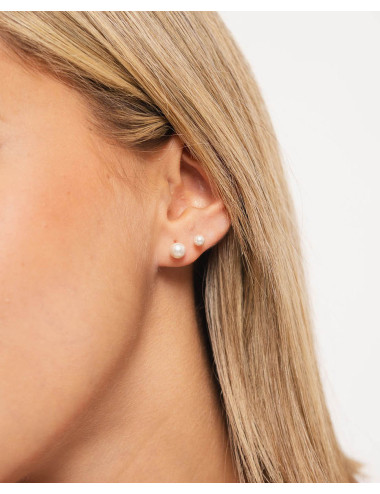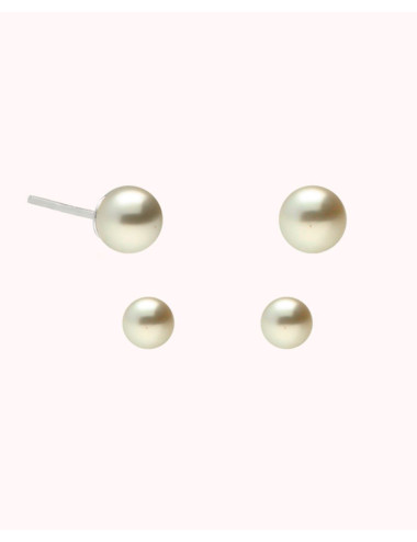 Set de cuatro pendientes individuales de plata de ley 925 con perlas de 4 mm y 6 mm, cierre de presión.