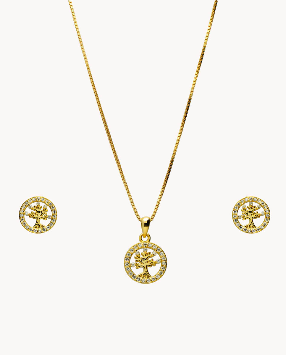 Set de pendientes y colgante árbol de la vida mía de plata de ley 925 bañada en oro