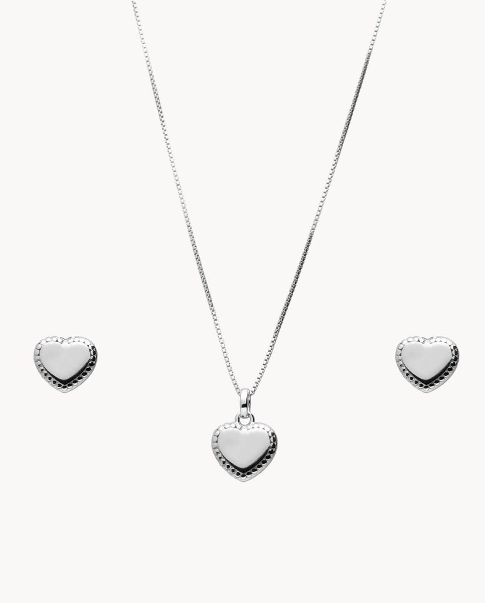 Set de plata de ley 925 bañada en rodio compuesto por pendientes y colgante de corazón. Pendientes con cierre de presión y colgante con cadena de 45 cms y cierre tipo reasa.