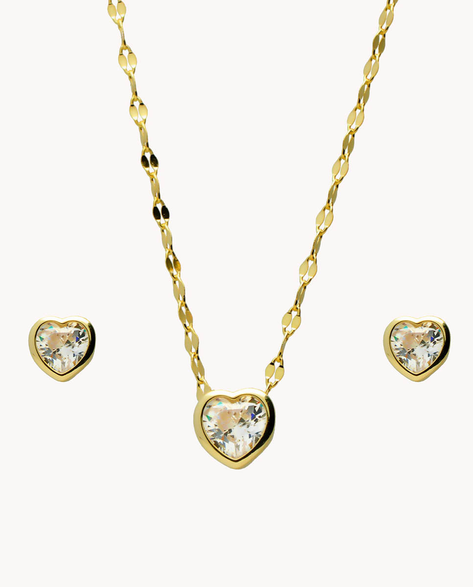 Set de pendientes y colgante corazón solitario de plata de ley 925 bañada en oro