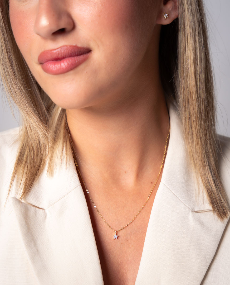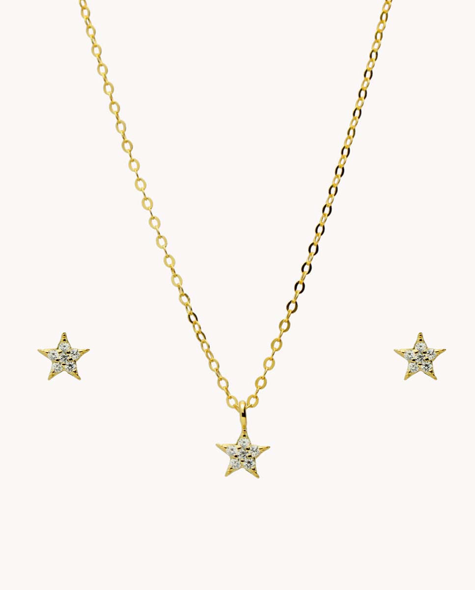 Set de pendientes y colgante estrella mini luz de plata de ley 925 bañada en oro