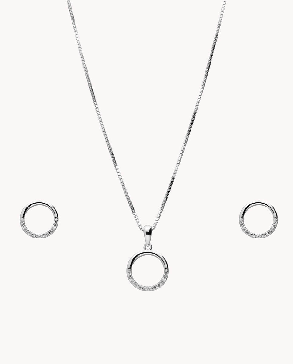 Set de pendientes y colgante mi círculo de plata de ley 925 bañada en rodio