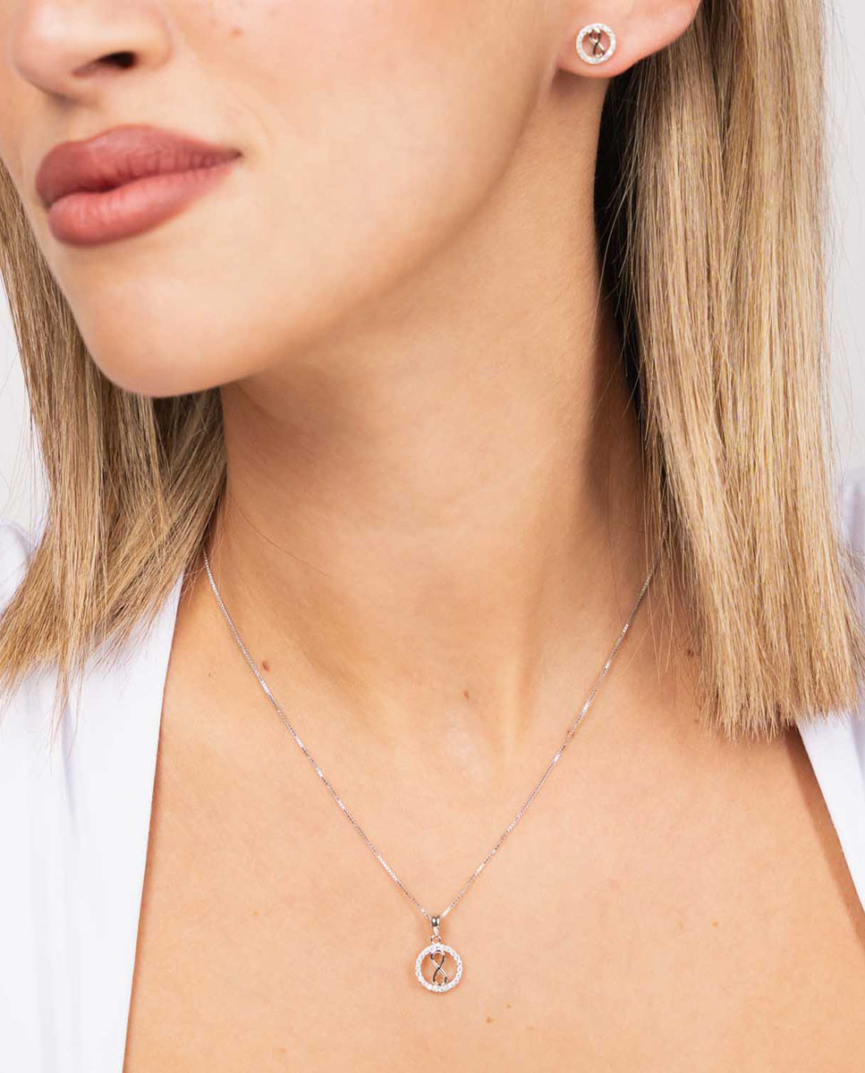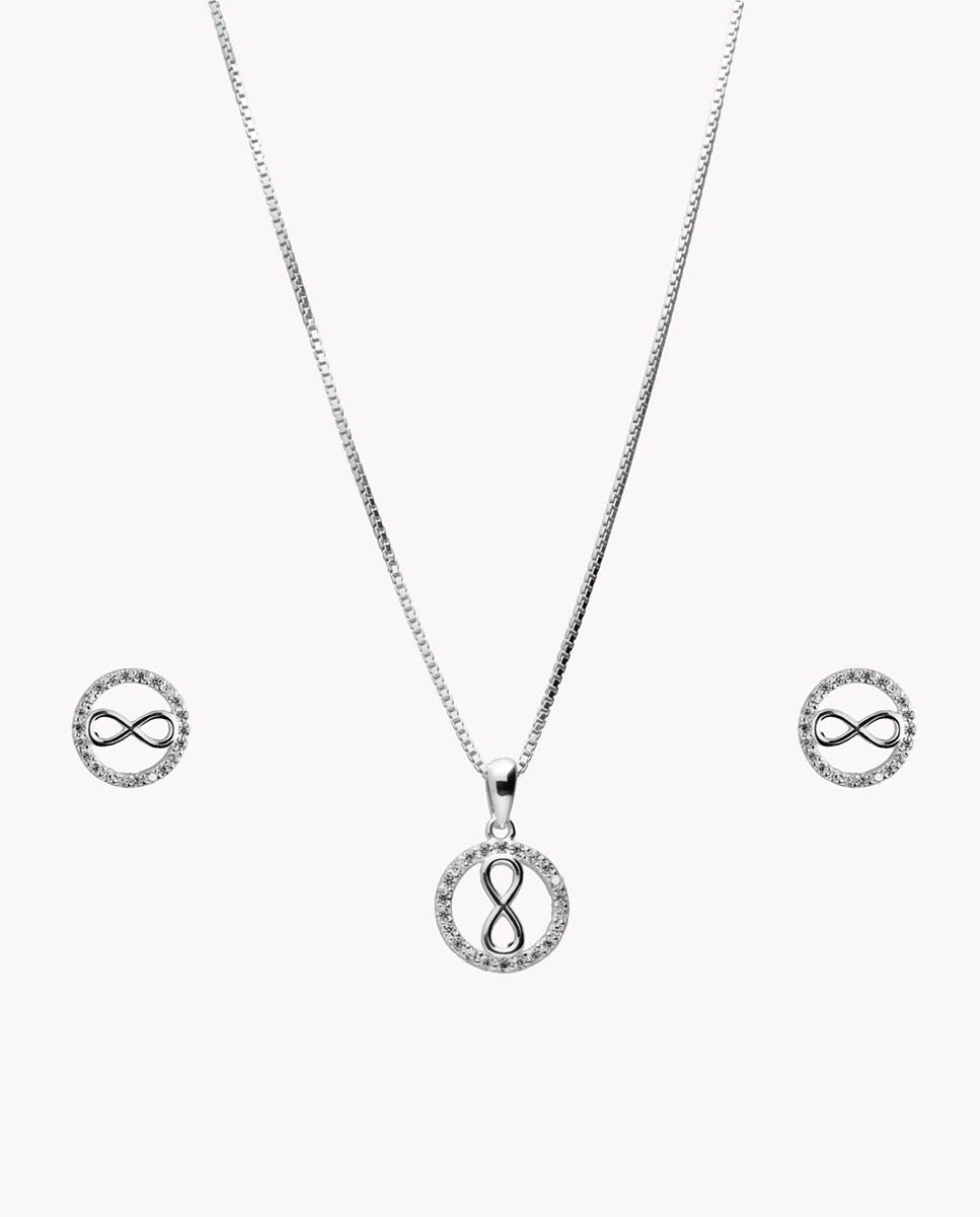 Set de pendientes y colgante mi infinito de plata de ley 925 bañada en rodio