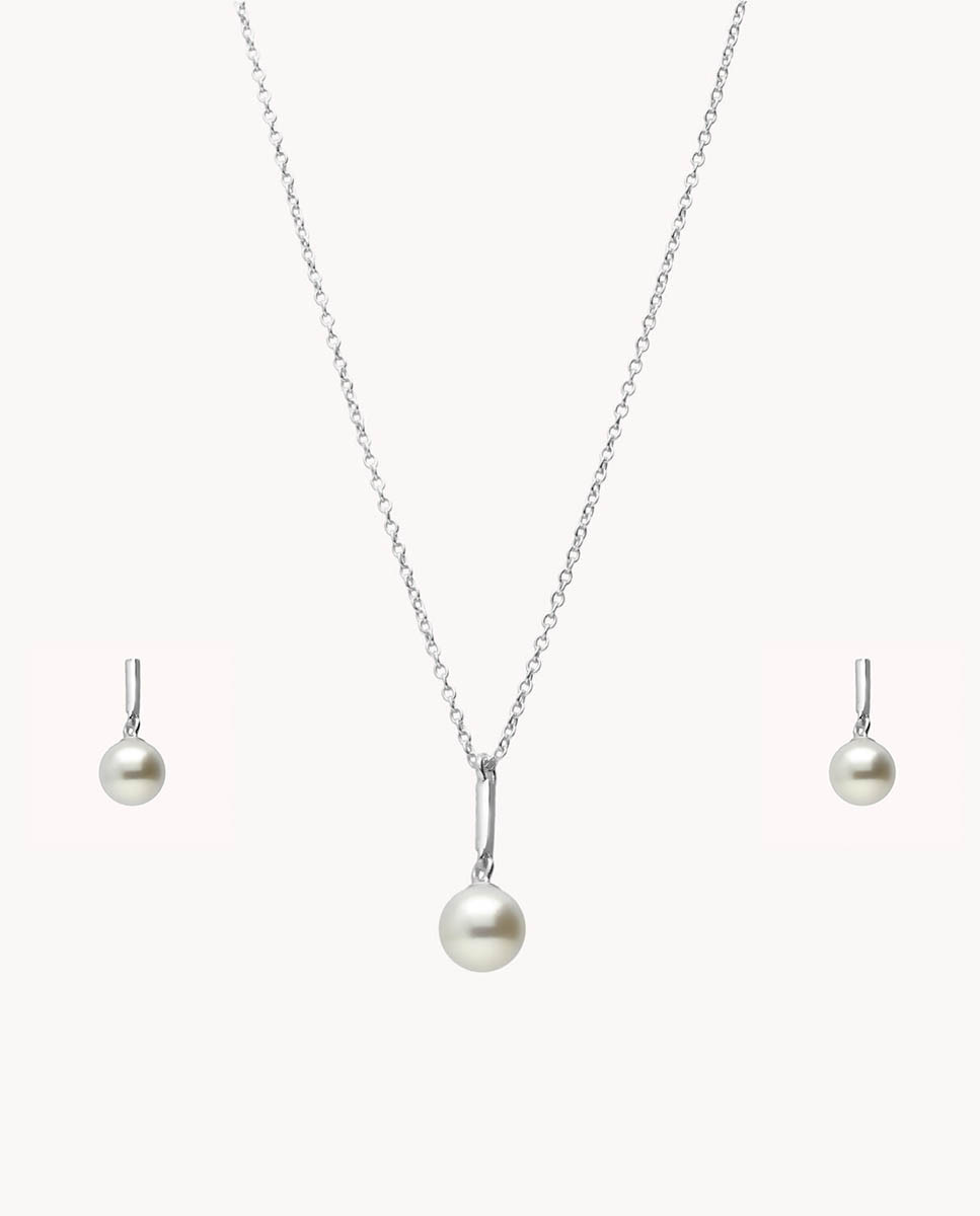 Set de pendientes y colgante perla cultivada tú y yo de plata de ley 925 bañada en rodio