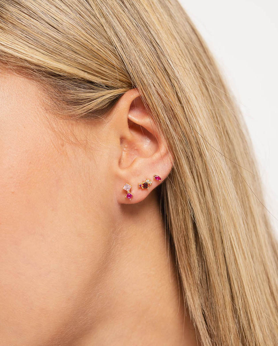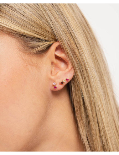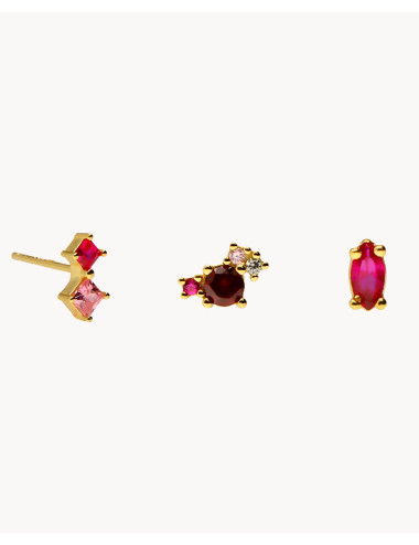 Set de tres pendientes individuales aurora de plata de ley 925 bañada en oro