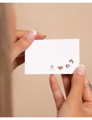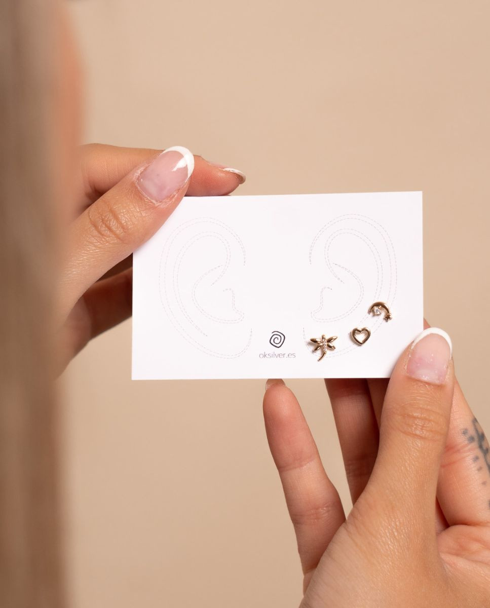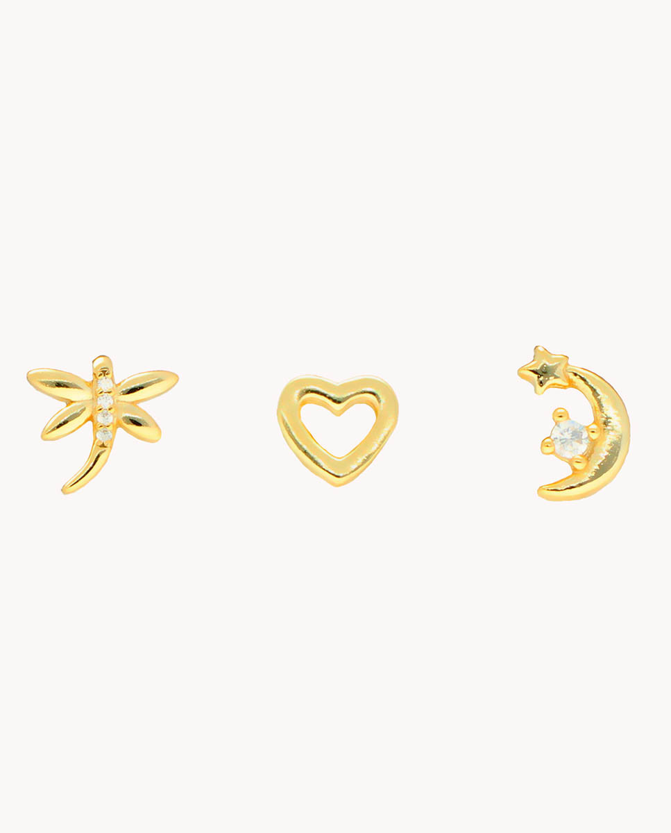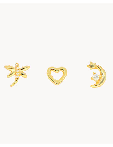 Set de tres pendientes individuales fly de plata de ley 925 bañados en oro con circonitas