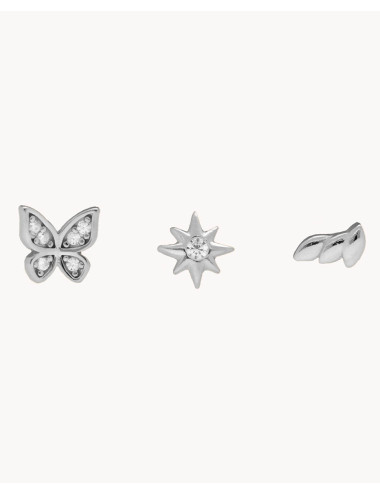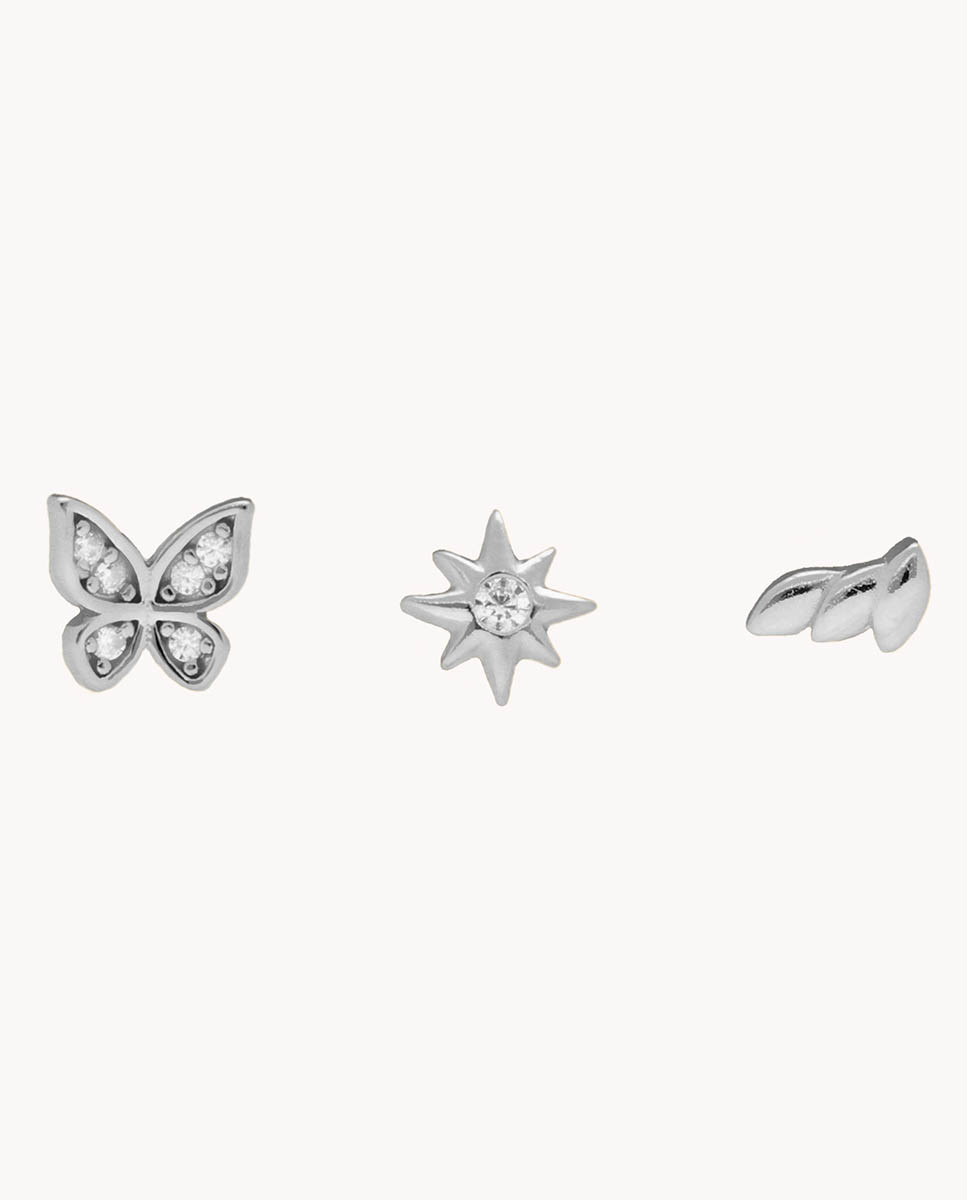 Set de tres pendientes individuales lucky de plata de ley 925 bañados en rodio
